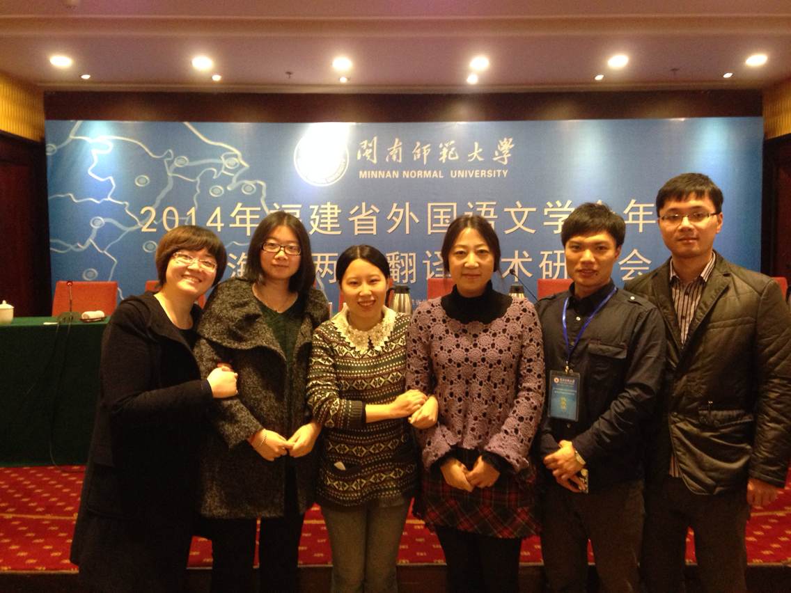 福建省外国语文学会2014年年会(暨海峡两岸翻译学术研讨会)于2014年12月12日至14日在素有“鱼米花果之乡”之称的漳州召开。本次年会由福建省外国语文学会主办,闽南师范大学开云足球承办。会议的主题为:“外语教育改革与发展:多元化人才培养与创新”。来自全省各地高等院校、上海外语教育出版社、外语教学与研究出版社的200多名代表以及部分台湾学者和外籍教师齐聚漳州芗江酒店,参加了研讨会。我校公共外语部的刘锦芳副教授、宋立林、林明、吴凡、尤佳湄、叶逢源等教师应邀出席了此次年会。