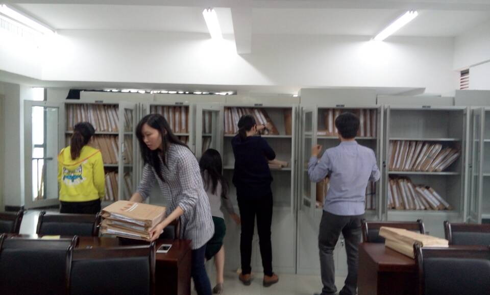 2015年4月24日下午,外语部雅思教研室教师苏丹、叶逢源、吴可佳、马升慧、吴晓晖、陈励、林婧、王鸽和尤佳湄在大学城校区行政楼外语部资料室整理近年来的本科试卷。雅思教研室的教师多次承担资料室的书柜搬运、卫生清理、资料摆放等工作。