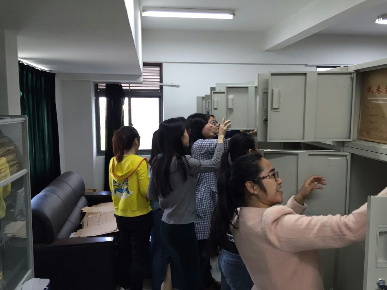 2015年4月24日下午,外语部雅思教研室教师苏丹、叶逢源、吴可佳、马升慧、吴晓晖、陈励、林婧、王鸽和尤佳湄在大学城校区行政楼外语部资料室整理近年来的本科试卷。雅思教研室的教师多次承担资料室的书柜搬运、卫生清理、资料摆放等工作。