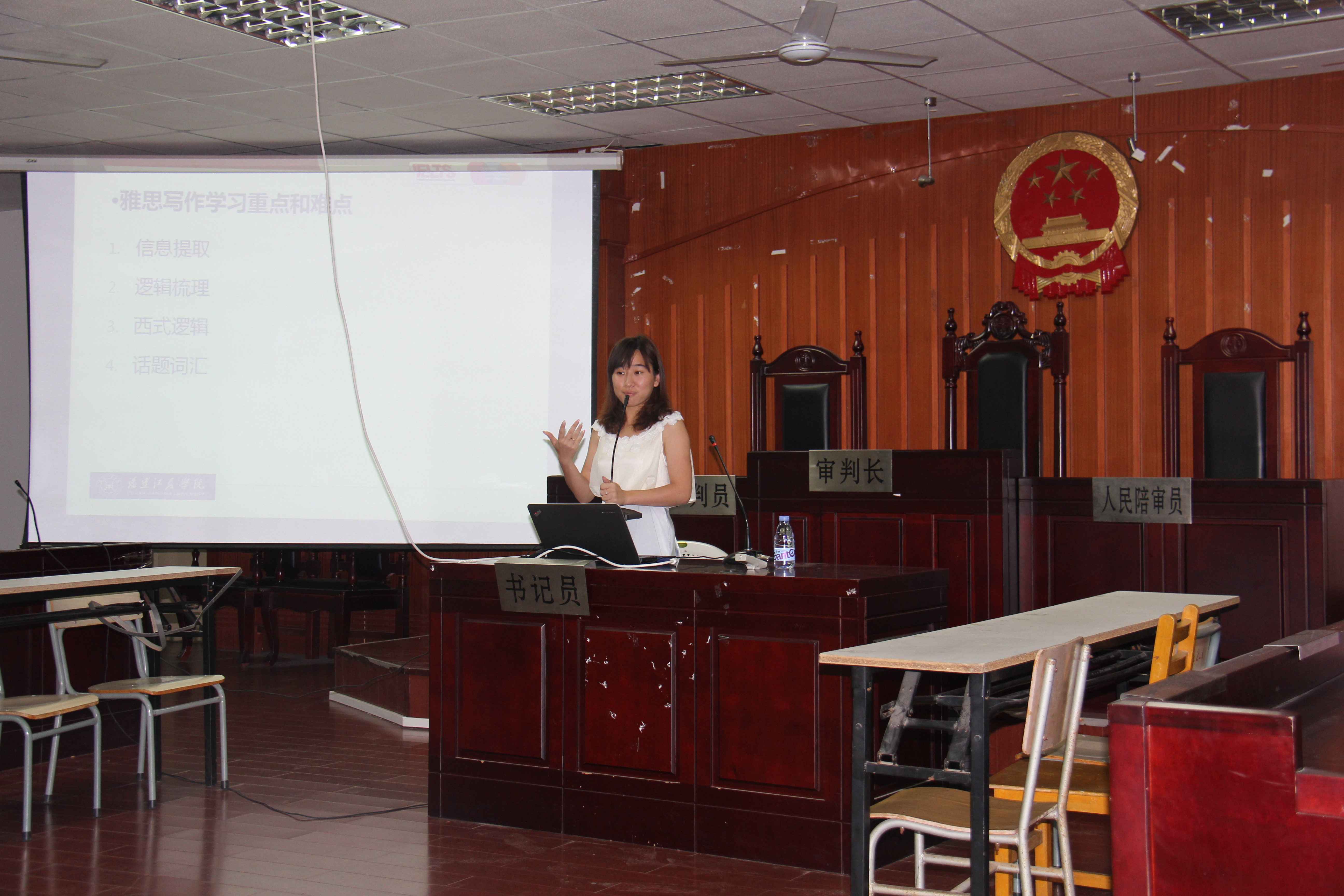 为热烈欢迎国际教育学院2015级新生,公共外语部雅思教研室的雅思教学团队和国际教育学院副书记、办公室主任、教学秘书和辅导员于2015年9月14日下午14:30一起为新生举办了雅思动员大会,希望在学院领导的关心以及雅思老师的讲解下,帮助新生明确未来学习方向。