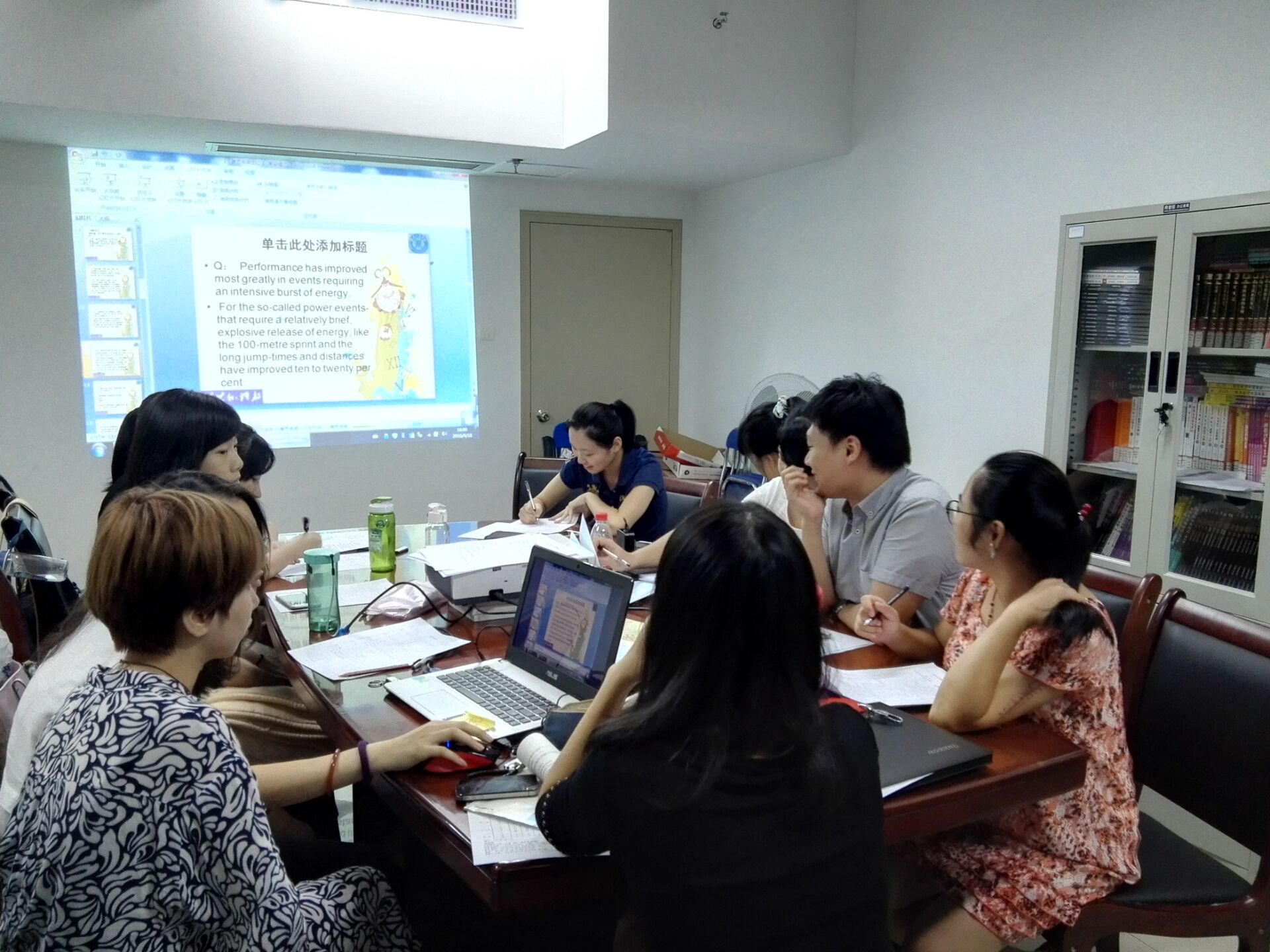 图为918日下午的雅思教研室“迎评估”说课评课活动