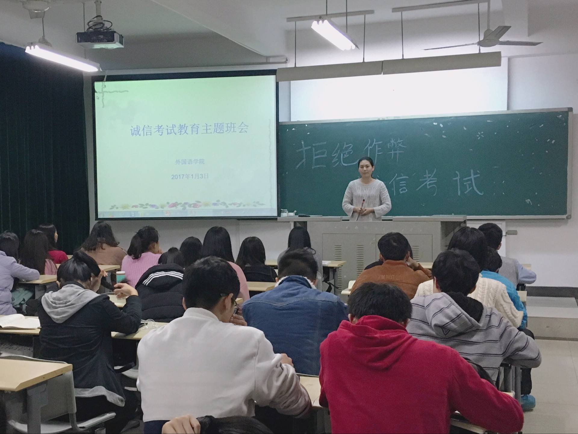 1月3号晚上,开云(中国)16级商务英语专业年级召开诚信考试教育主题班会。班会由辅导员何万莉老师主讲,辅导员通过一个德国女留学生的案例来引发对诚信的思考。