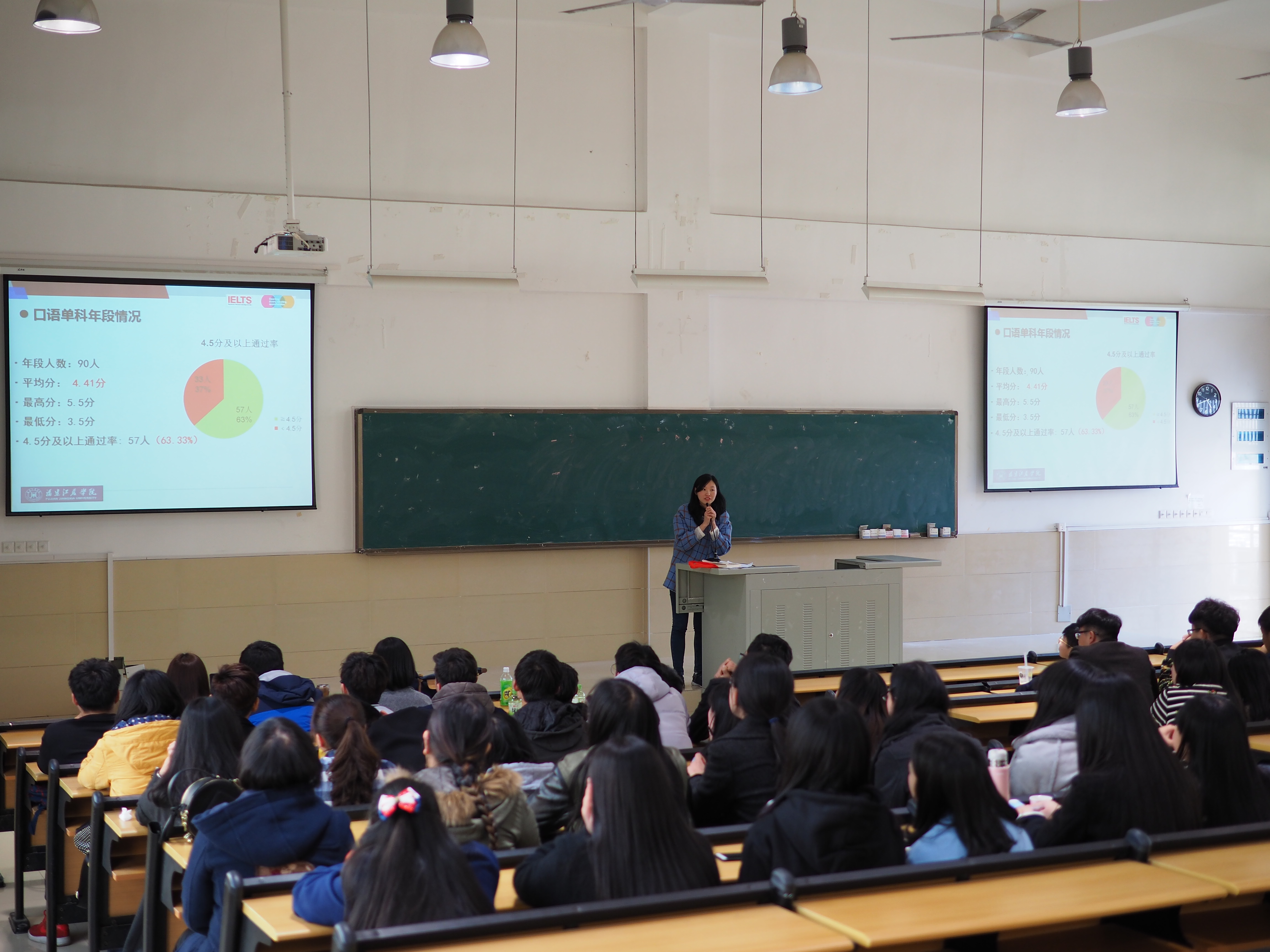此次大会由雅思教研室吴可佳老师主持。吴可佳老师首先针对16级HND学生16-17学年第一学期期末雅思考试成绩进行简明的整体数据分析,之后雅思单科老师分别就16级HND学生上学期期末雅思听力、阅读、写作、口语的年段总体情况及各班考情做精彩而详细的陈述,并指出16级HND学生存在问题,提出和同学们一起努力进取的各项方案。值得肯定的是经过雅思各科老师一个学期的辛勤教学,16级HND学生的雅思期末成绩相较上学期期初以及期中成绩,有了明显的进步。最后,张俊刚老师就雅思考试报考流程以及本学期模考安排向同学们做了报告。