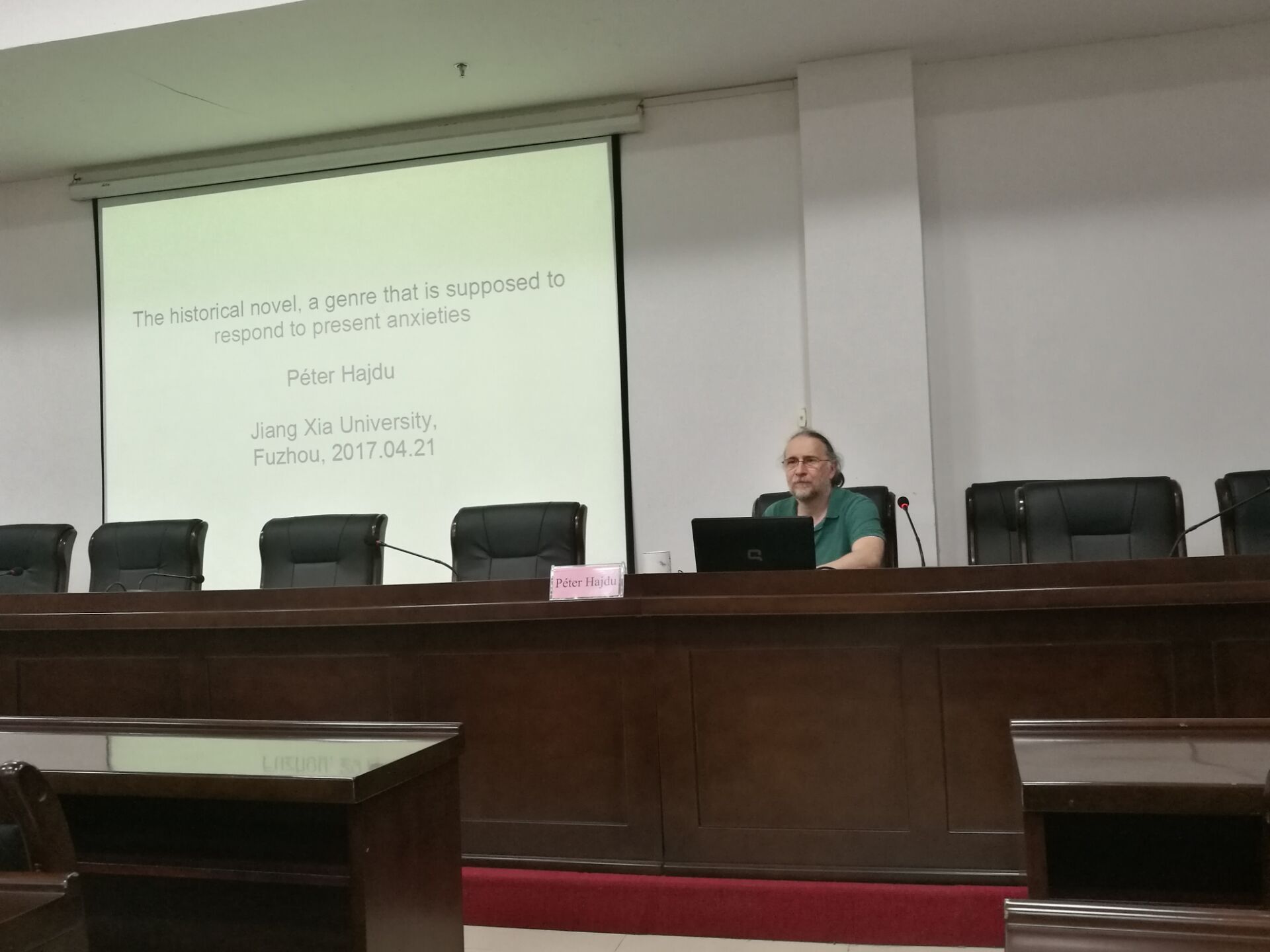 Peter Hajdu教授首先介绍了历史小说的不同体裁,阐释了小说中现实与过去、重叠与距离之间的异同点和辩证关系。他指出,历史小说是对当代生活中现实问题的集中反映,蕴藏了民族精神与核心特质。他借用Kristin Lavranvdatter、Jose Saramago等作家的例子讲述了历史小说如何在缺乏事实与数据的情况下进行虚构与想象。Hajdu教授认为,后现代理论动摇了历史如实讲述事实的传统,后现代元小说进一步解构了历史的真实性,表达出真实的不确定性。他以历史题材电视剧《罗马》、连续剧《都铎王朝》、《唐顿庄园》等历史剧为例,说明社会对历史小说的兴趣反映出的是时代性焦虑,是人们从历史中寻求对当下困惑解答的希望。Peter Hajd教授对欧洲历史小说的广博涉猎以及对历史小说与现实生活之间联系的深刻而独到的见解让在场听众受益匪浅。