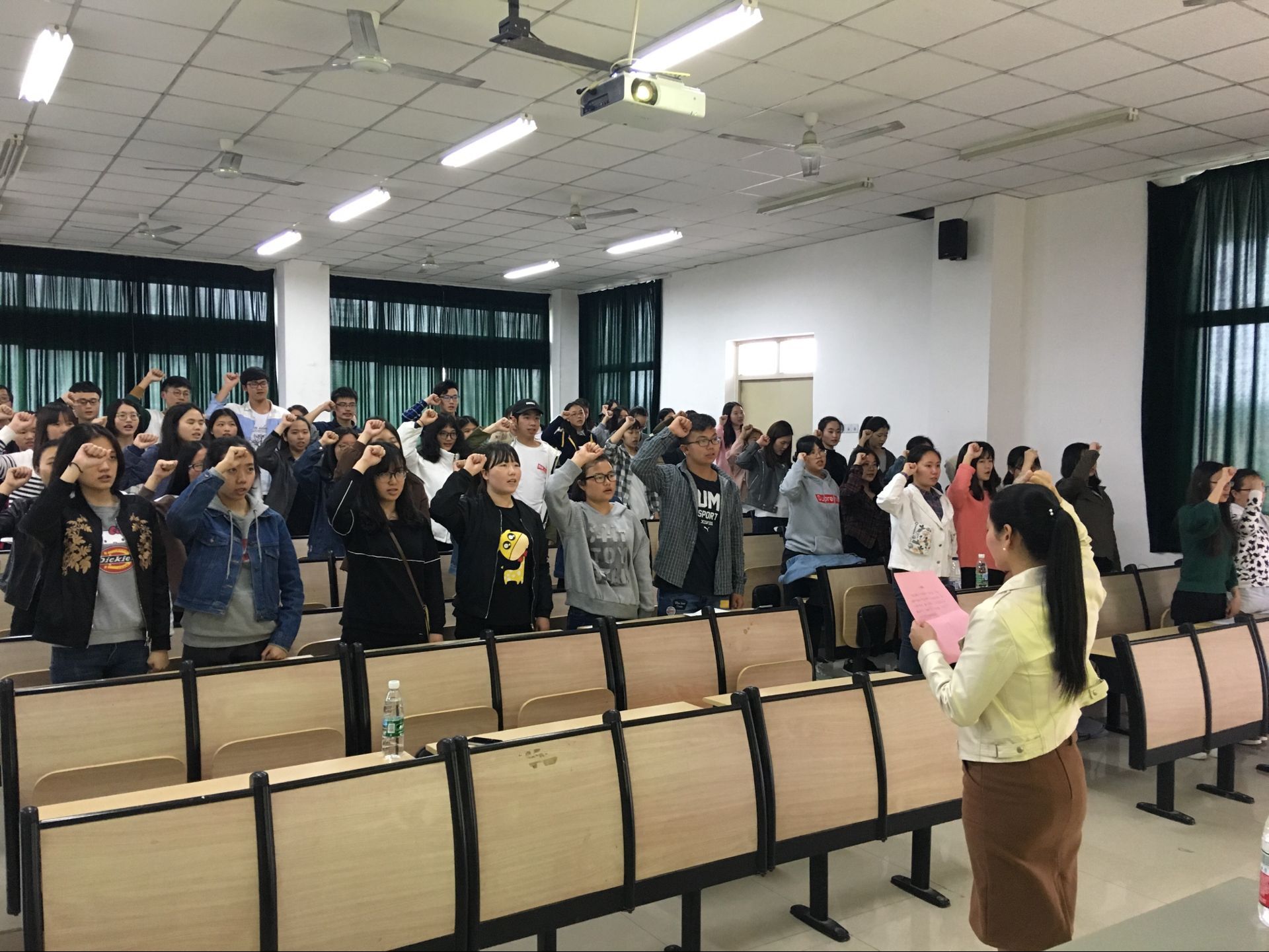 何万莉老师带领全体团员们,重温入团誓词,警醒大家不忘初心,砥砺前行,严格要求自己,勤奋学习,学会吃苦,做一名积极向上的优秀共青团员。最后,以全体团员合唱《共青团之歌》结束本次活动。