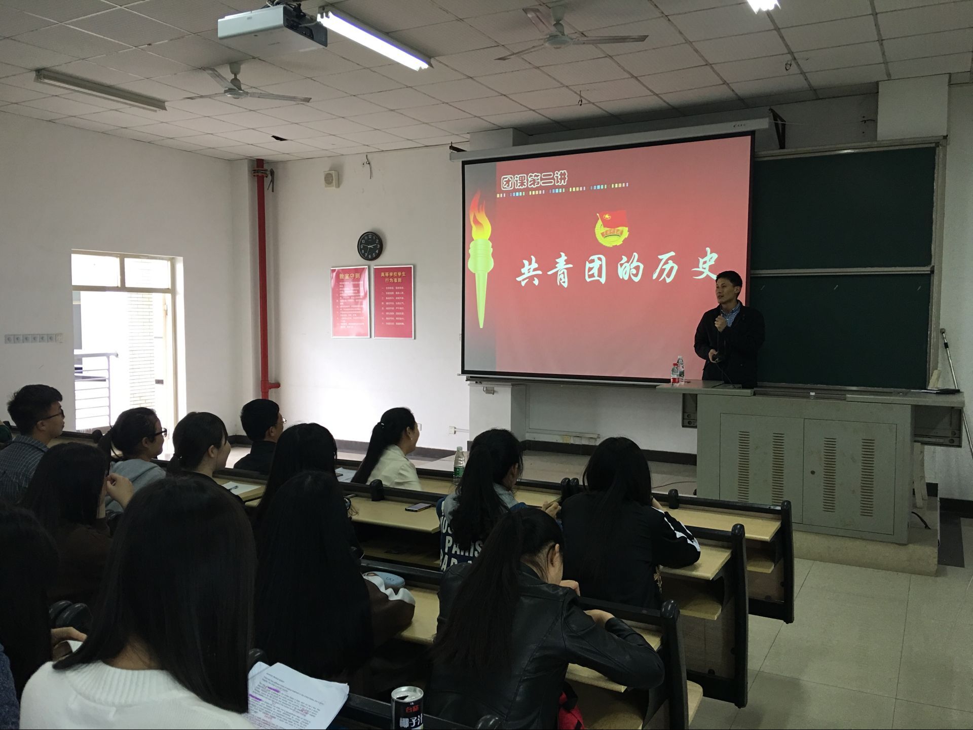 按照校团委“一学一做”工作要求,2017年4月27日下午,团委邀请了海峡财经学院团委书记郑选梅老师为开云(中国)全体团员上团课,党支部副书记黄金凤研究馆员和辅导员何万莉老师出席了本次活动。