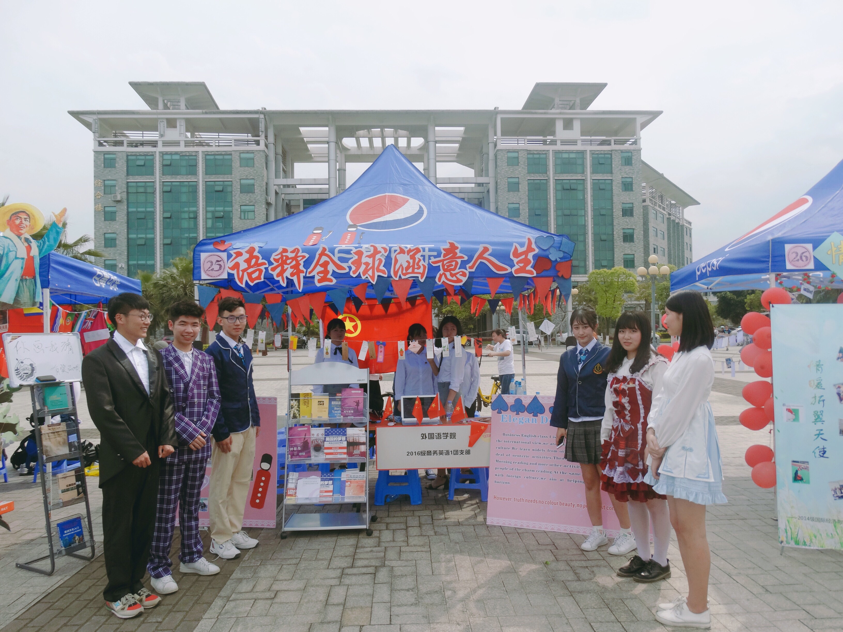 16级商务英语1班以“语释全球,涵义人生”为主题,活动中所制作的中英双语版本精美书签对帐篷进行了围绕式的挂饰,辅之以相关的英文阅读书籍,陈斌等同学精心准备的朗诵表演,同学们独特的西洋服装,青春洋溢的风貌展示出团支部朝气蓬勃的风采,博得了众多评委的好评。16级商务英语2班以“践行‘三走’精神,创造活力校园”为主题,活动中摆放了同学们倾心书写的精美书签,在帐篷内挂上了同学们“撕名牌”活动的衣服,以激励我们所有青年在今后的生活中我们也要像“撕名牌”一样生龙活虎。同时,设计了一些小游戏吸引老师和其他学院的同学们积极参与。活动结束后,同学们将会场上遗留下的垃圾捡入垃圾袋中,并且将装饰品清点完毕,妥善送回团委活动室,方便二次利用。