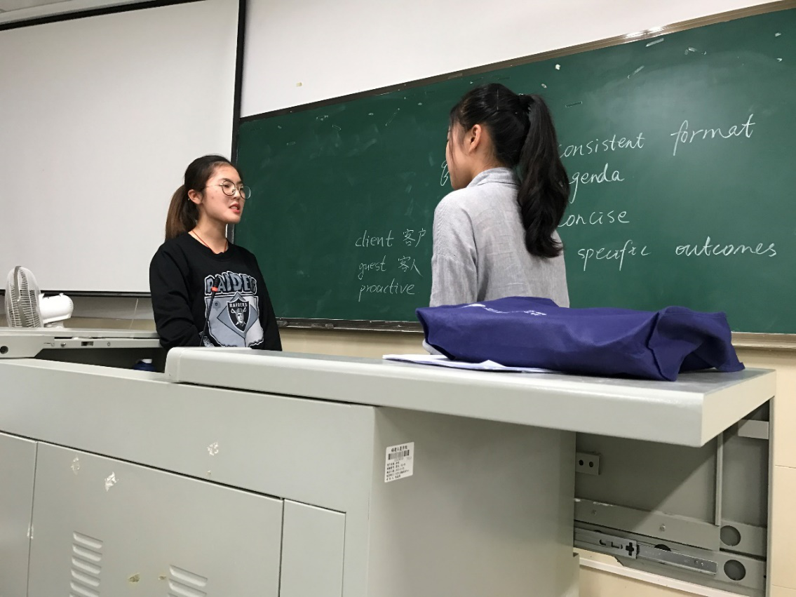 本次实训课程旨在通过听说训练,让学生了解并掌握商务活动的常见环节,包括:商务求职面试、商务办公、商务接待、商务差旅、商务谈判等等,同时帮助学生巩固和扩大具体商务场景所包含的商务语言知识、商务专业知识和商务文化背景知识等。教师通过设置不同的商务场景及任务,有效地锻炼学生实务操作技能。不同于传统的授课教学,本次实操过程中教师主要扮演任务引导角色,学生则通过小组协作形式,开展探究学习。本次实训切实培养了学生的国际商务沟通能力,信息获取、整合及应用的能力,同时也提升了学生的团队合作精神。
