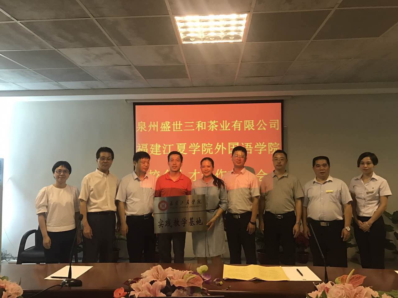 2017年6月9日,开云足球郑竹群副院长带领全体党政领导班子以及商务英语、商务法语教学团队前往泉州盛世三和茶业有限公司考察,签订校外实践基地协议,并举行授牌仪式。这是开云足球继万全现代物流股份有限公司实践基地之后签订的第二个学生校外实践基地。