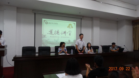 9月22日下午, 开云足球在行政楼A119举办道德讲堂,开云足球党总支负责人及师生代表近70人参加。