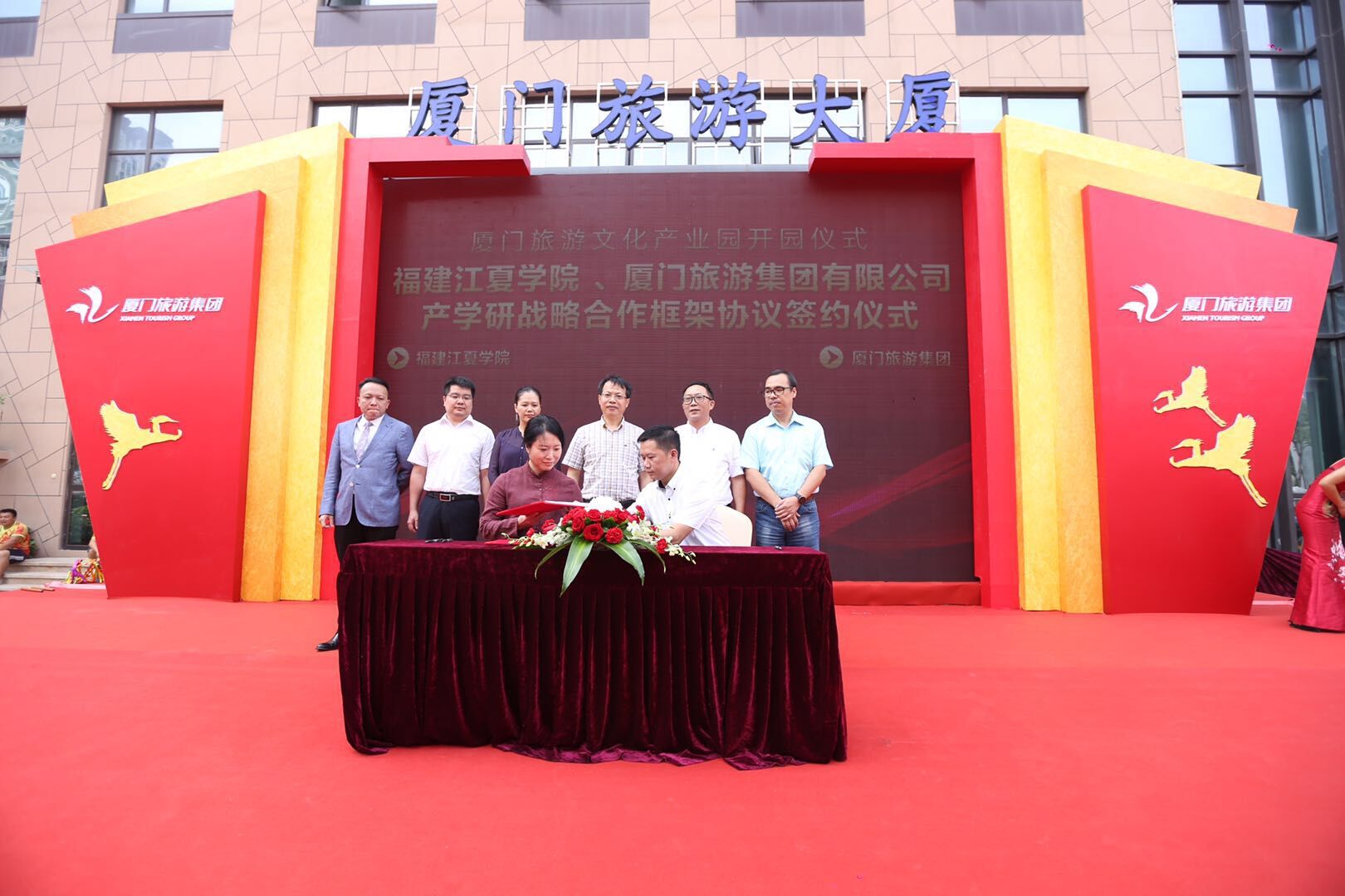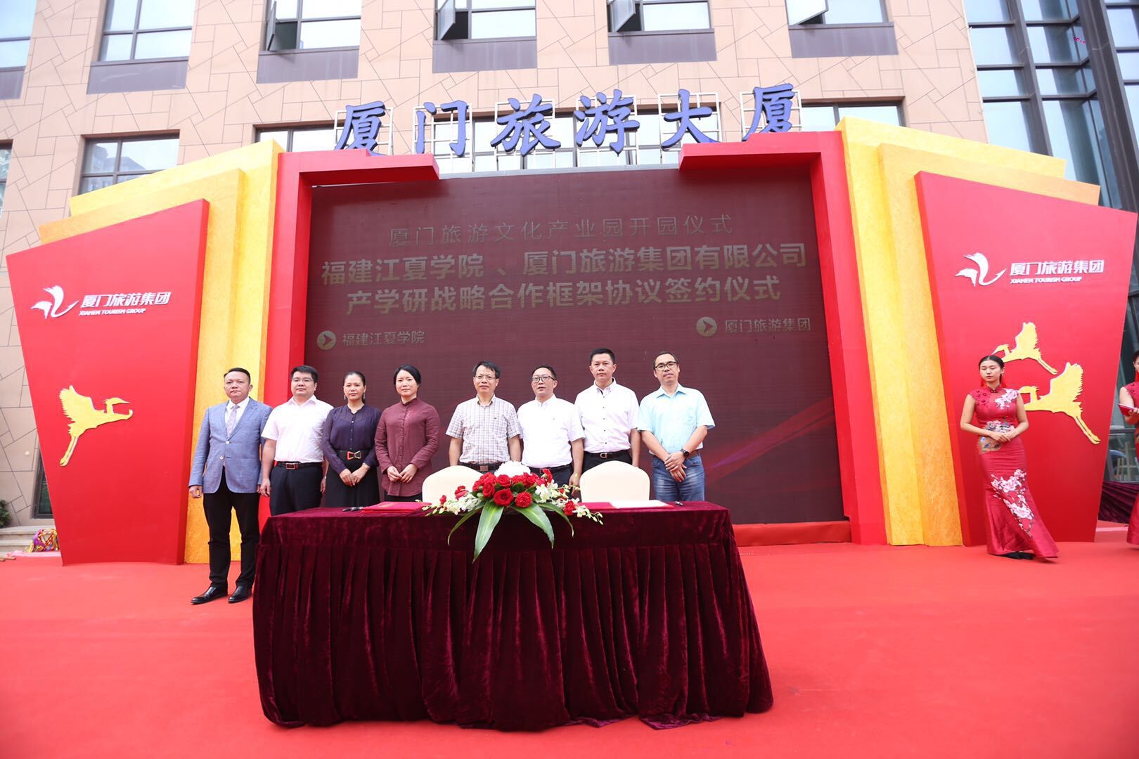 10月19日上午,刘慧宇副校长率教务处李良雄副处长、开云足球郑竹群副院长出席了厦门旅游文化产业园开园仪式,并代表学校与厦门旅游集团签订了《产学研战略合作框架协议》,厦门市旅发委副主任钟海林、省旅发委信息中心主任陈孟麟共同为签约见证。