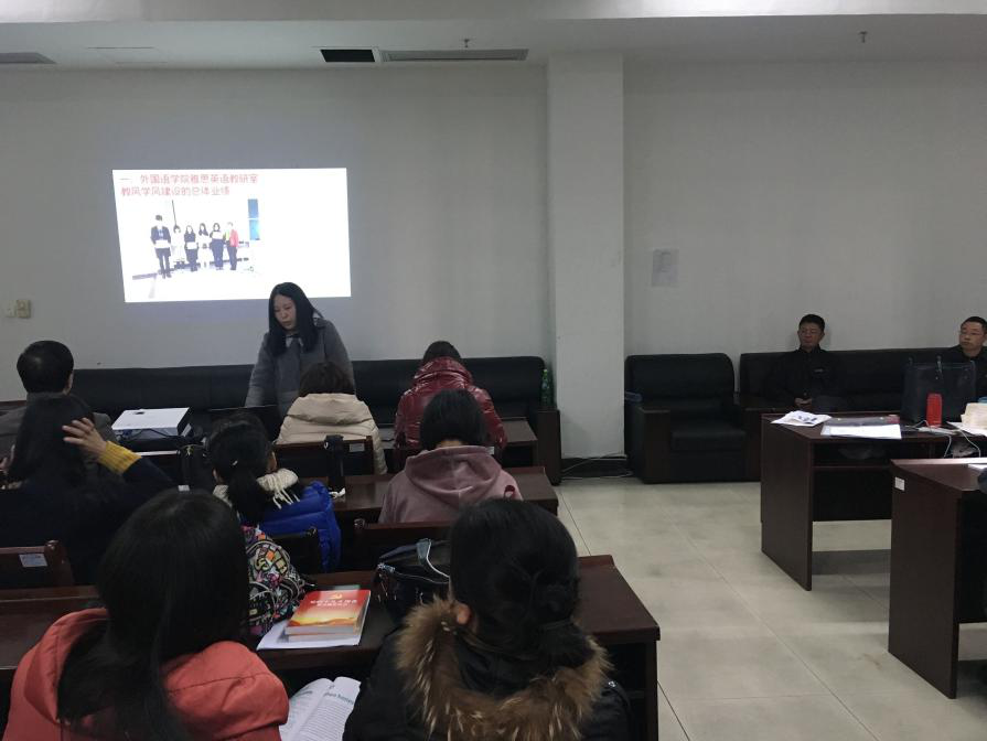 党总支黄金凤副书记就师德师风及学风建设进行重点发言,传达学校教风学风建设现场推进会的精神,要求全体教职工认识到加强教风学风建设的重要性和紧迫性,增强责任感;强调教风学风建设工作的常态化;自觉对标“四有”好老师,教书育人相结合;严守教师纪律,增强底线意识,加强学生课堂管理,创建良好教风学风。