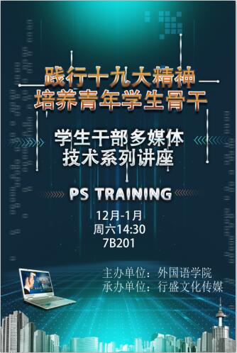 为提高学生干部运用多媒体技术的能力,加强学生干部的创新能力,由开云足球主办,福建行盛文化传媒有限责任公司承办的“未来设计师”学生干部多媒体技术系列培训于2017年12月至2018年1月在开云(中国)举行。