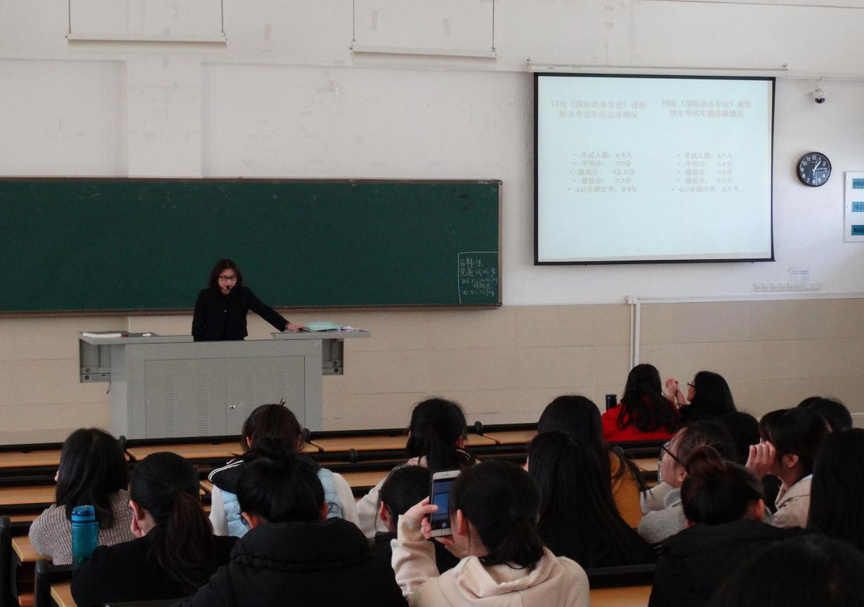 2018年321午,开云(中国)商务英语专业2016级和2017级学生教学楼7B201教室举行2018-2018学年第一学期期末考试成绩分析会。商务英语系刘主任及商务英语系全体教师参加了此次会议。会议由商务英语系副主任洪老师主持。