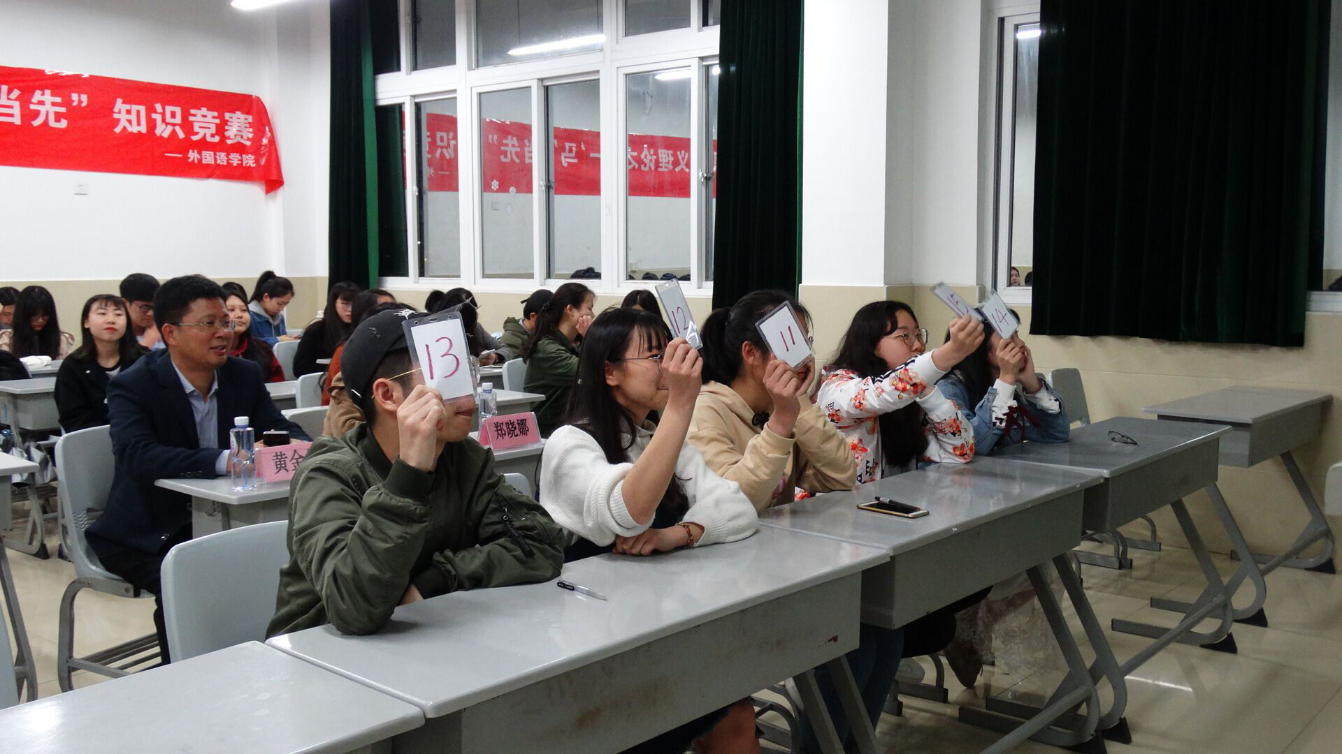 比赛分为必答题和抢答题两个环节,同学们认真回答每道题,在抢答过程中,选手们你追我赶,扣人心弦。在经过激烈角逐后,最终2017级商务英语(2)班的俞灵锦获得了冠军,2016级商务英语(1)班和(2)班的吴沛霖和林秋滢分别获得了二等奖和三等奖,其他7位同学获得了优秀奖。