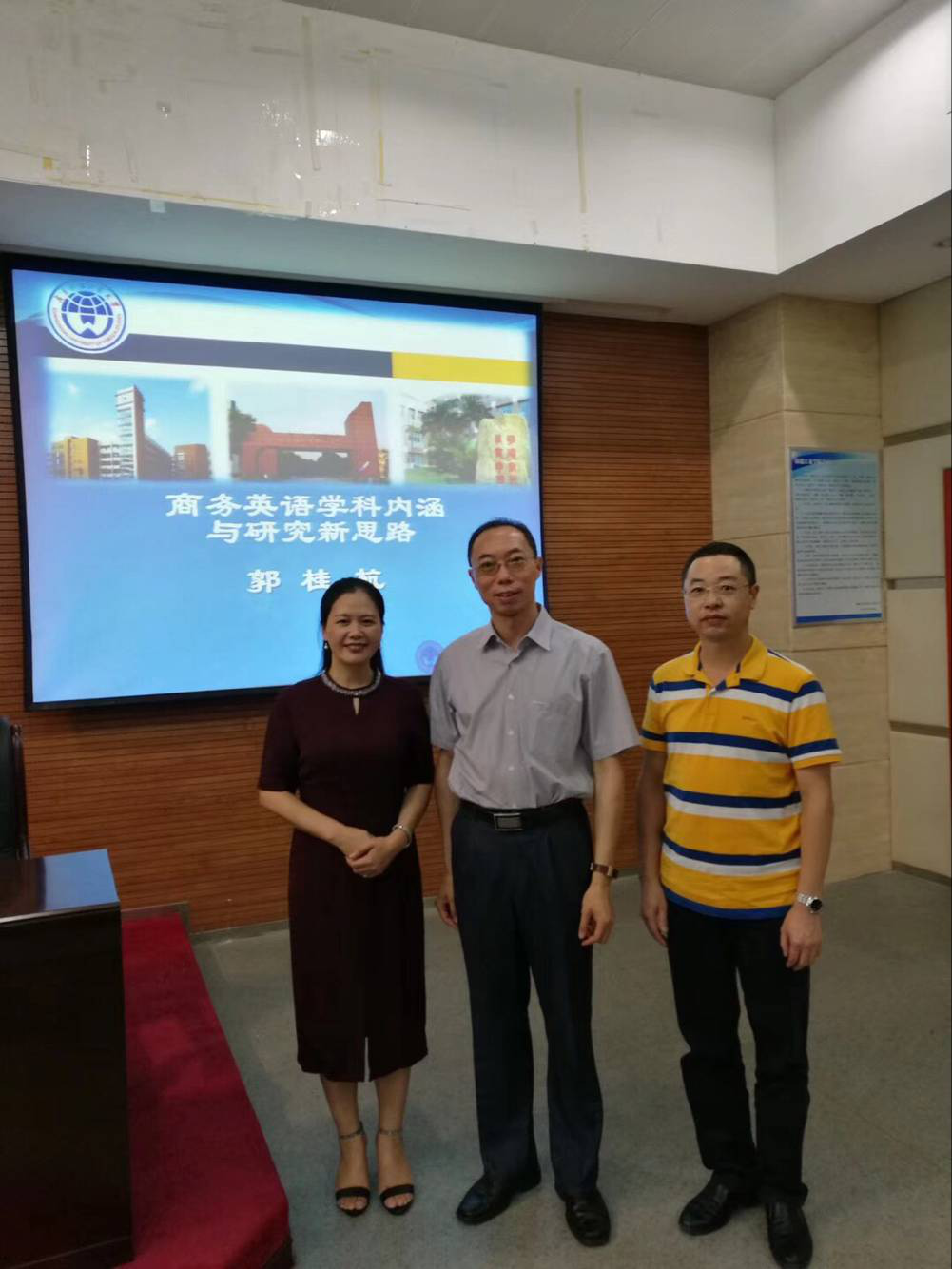 2018523下午,广东外语外贸大学国际商务英语学院院长郭桂杭教授莅临我校龙江讲坛,做题为商务英语学科内涵与研究新思路讲座。郭教授在本次讲座厘清商务英语研究的学科内涵、学科特色、学科性质、研究目标、主要研究方向和内容及其与相近二级学科的关系;同时结合自身的研究经历,就不同学科理论如何应用于本学科的商务英语教育和商务文化等研究方向,提出自己的看法和研究新视角。