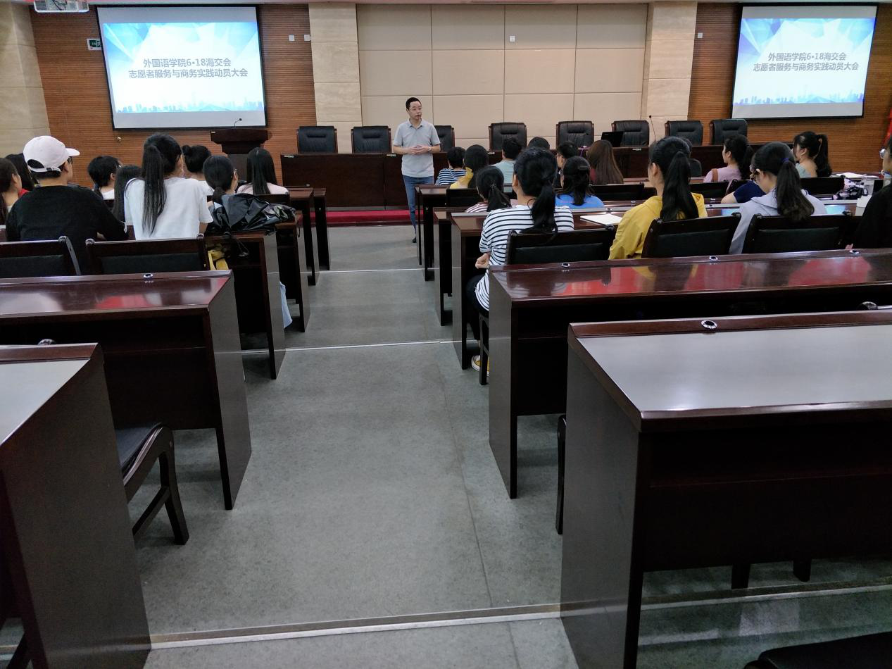 为确保学生认真做好6·18海交会志愿服务工作,完成商务实践任务,树立良好的学校形象,学院高度重视,认真部署,并于611日,在4C103教室召开了6.18海交会志愿者服务与商务实践动员大会。