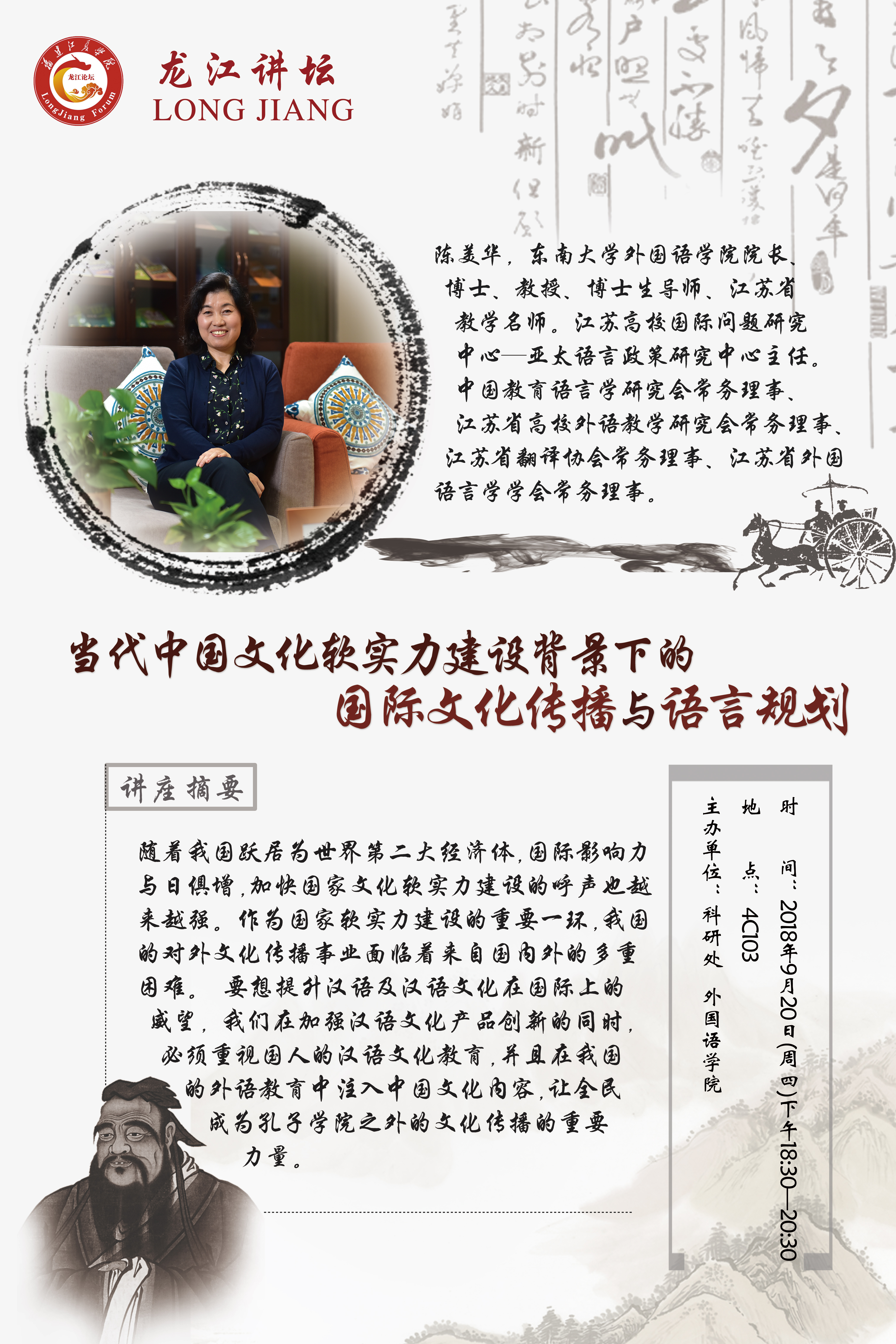 龙江讲坛:当代中国文化软实力建设背景下的国际文化传播与语言规划
