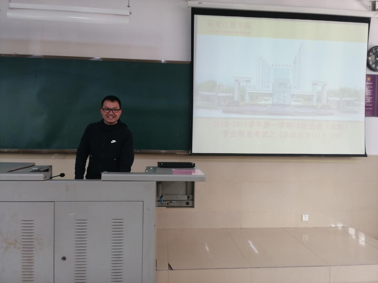 成绩分析会上,胡佳教授就本次考试的数据进行了详细的分析讨论,对同学们在法语学习中的优势和不足做了剖析,并提出了相应的解决办法和接下来的工作计划;随后,赖荣发老师向同学们强调了学习法语需要积极的学习态度,并用具体事例激励同学们提高法语学习的热情。此次成绩分析会为下一阶段教育教学工作的有序开展、学生成绩的稳步提高奠定了基础。