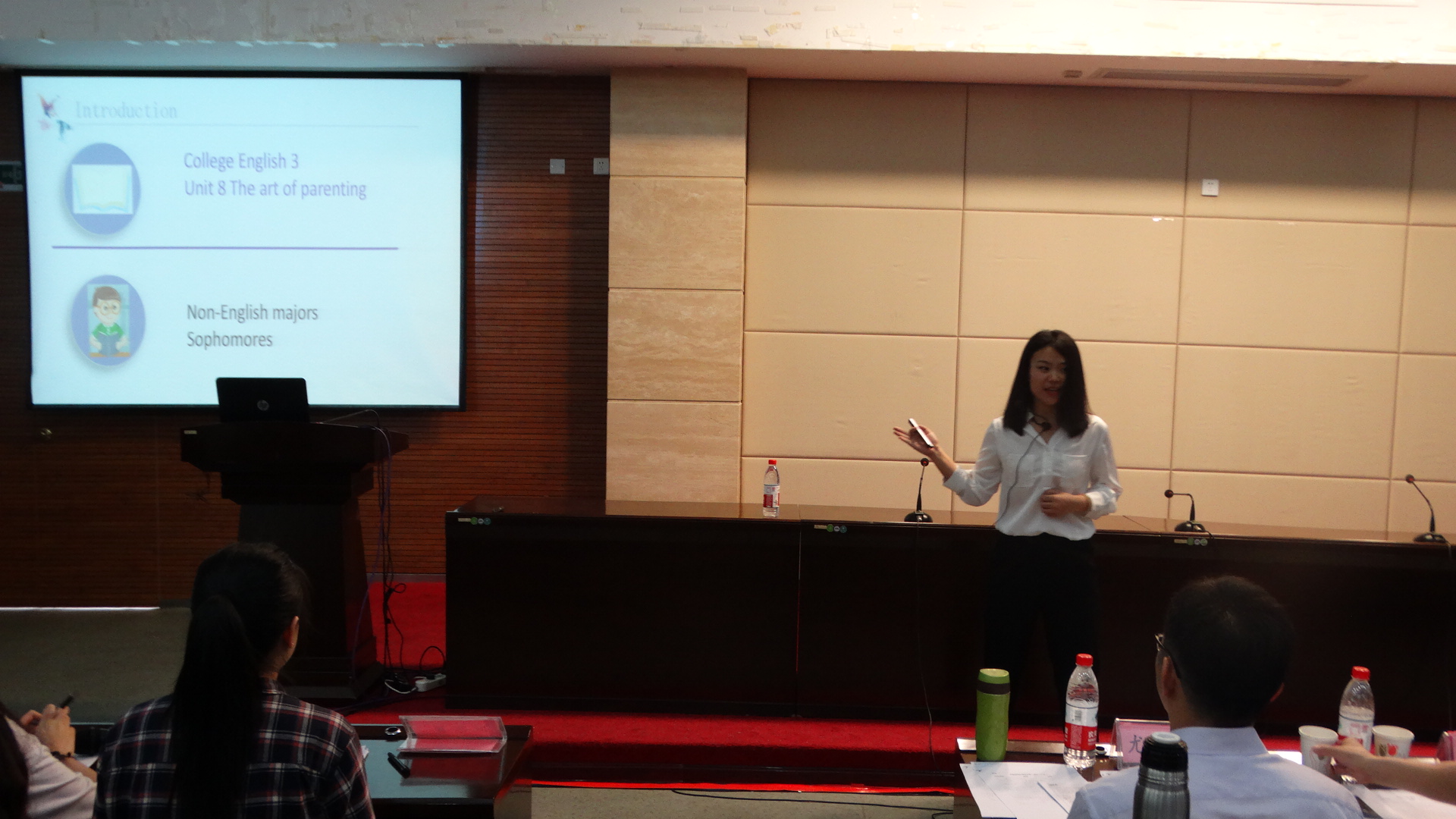 赛后,潘红教授分别从文本解读、语言能力和教学方法等九个方面对本次比赛的六名选手一一做了精彩点评。