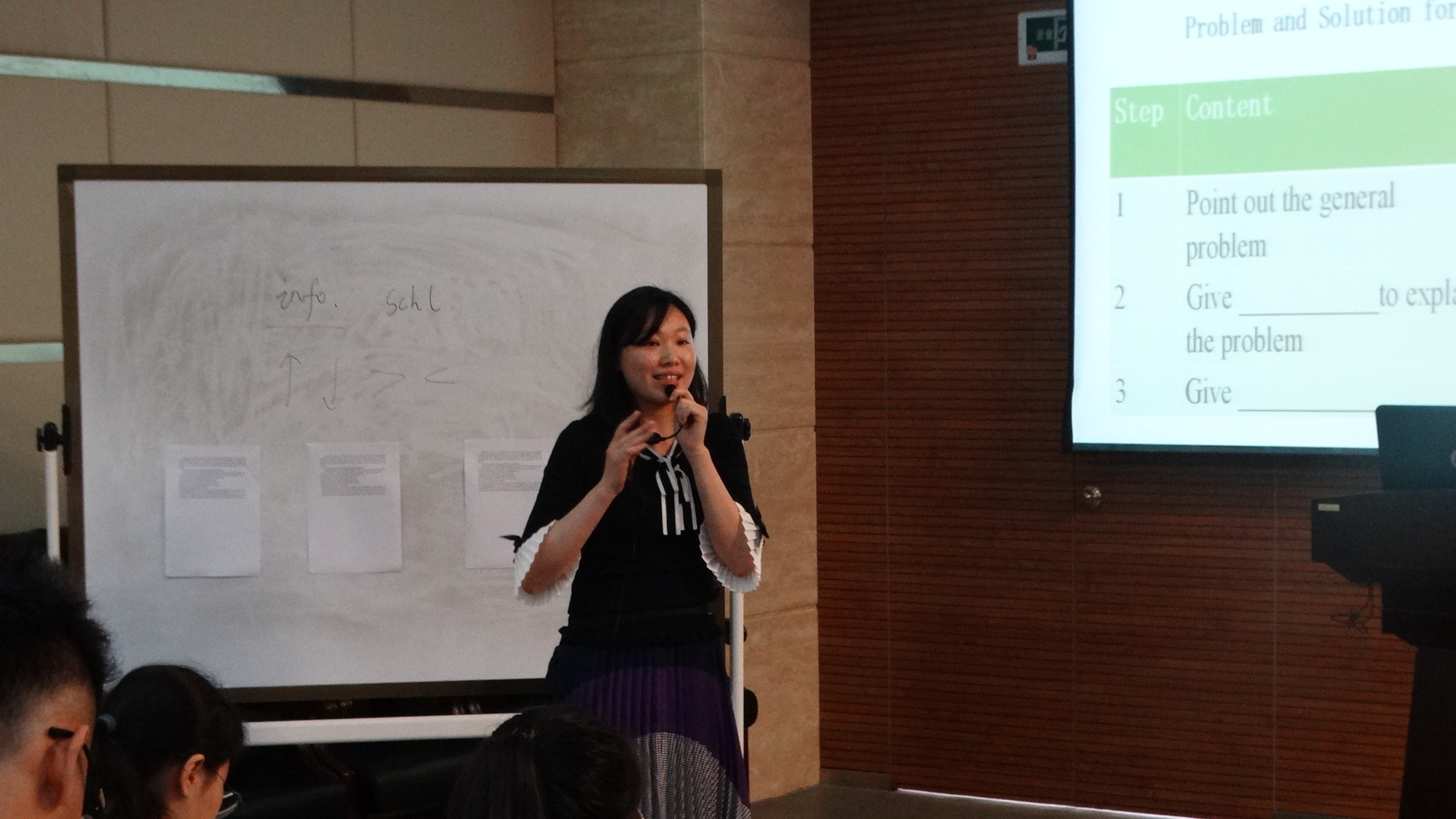 比赛分为授课与回答评委提问两个环节。来自视听说组的林婧、吴晓晖、苏丹三位老师经过激烈角逐,苏丹老师获得外教社杯福建省赛区复赛资格;综合组的马升慧、吴可佳、丁怡伟三位老师在全力比拼后,最后马升慧老师进入复赛。