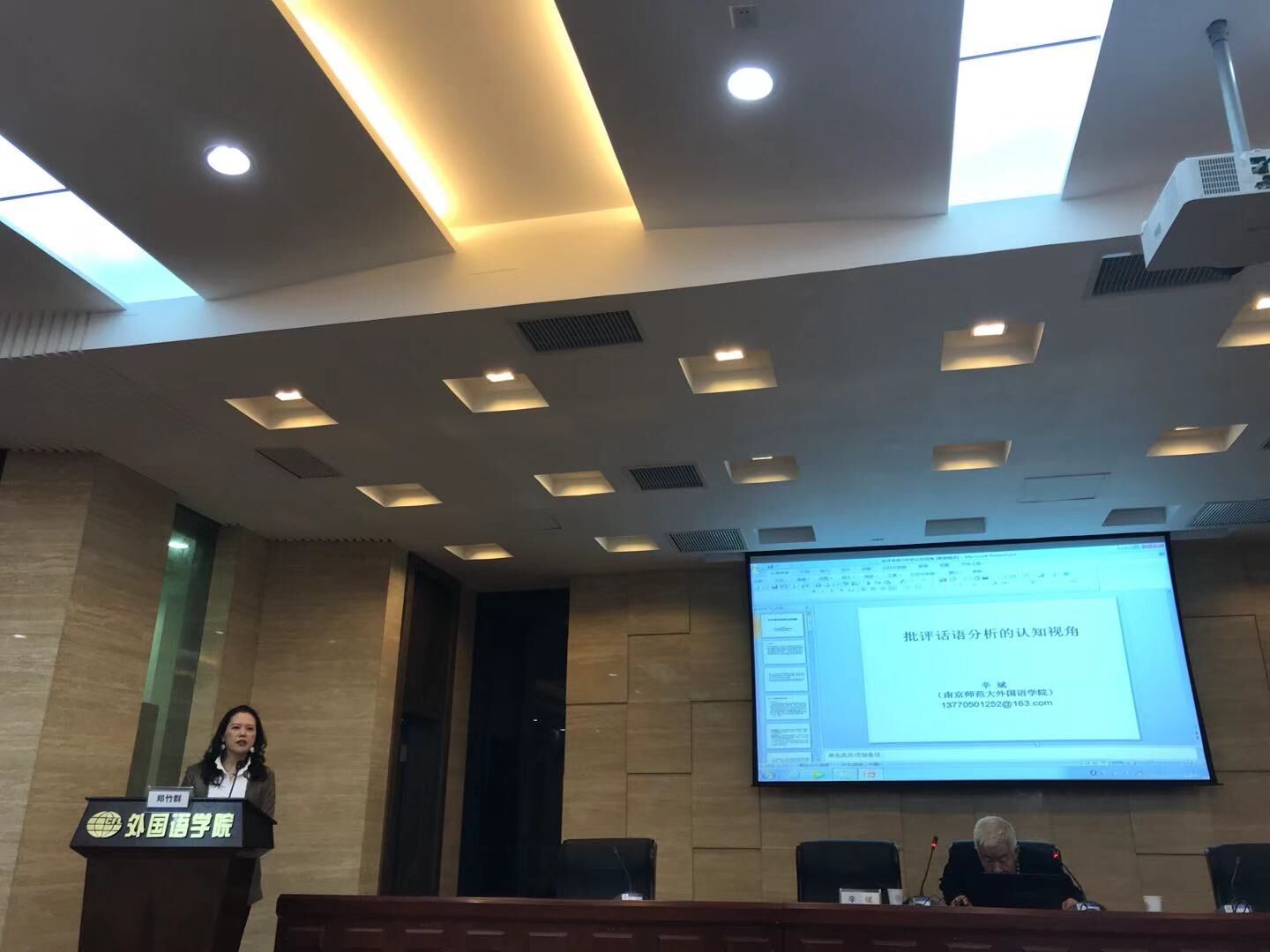 开云足球院长郑竹群教授除了提交论文《巴赫金怪诞身体修辞》参与大会讨论外,还应主办方及承办方邀请,为中国英汉语研究会话语研究专业委员会会长、南京师范大学博士生导师辛斌教授发言担任主持人。辛斌教授《批评话语分析的认知视角》选择认知视角作为研究的落脚点,是基于对批评话语分析的对象及其内在机制特点的思考。此次大会国内几位知名学者均提到批评话语分析的认知视角问题,这表明研究焦点开始转向对社会和话语之间连接的关注,说明批评话语研究既要宏观也要微观,既注重外部因素也要注重内部因素,既要有集团视角也要考虑个体视角,由对语言集团所处的社会语境、社会交往、社会评价、现实意义、历史意义转向对语言个体内部心理和认知方面对语言的描述和解释。认知视角对批评话语分析的学术价值在于为批评话语分析提供多一种理论思考,寻找多一种理论解释框架,拓宽批评话语分析研究范围,增加批评话语分析的研究范式,最重要的是提醒在座研究者,语言是多面的,语言的本质应该即是社会的,也是心理的和认知的。