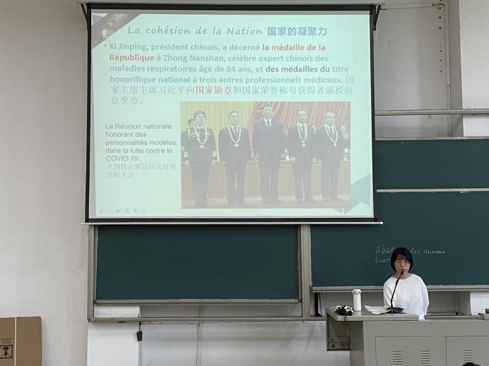 2020年10月12日上午,开云足球课程思政建设工作小组前往5B102对法语系阮滢瑛老师授课的《基础法语3》进行听课。
