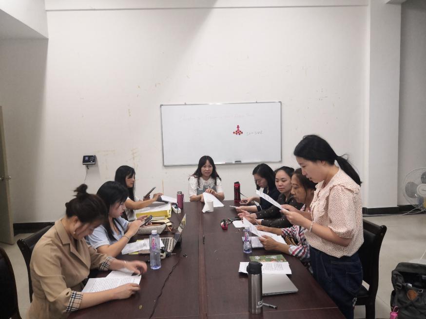 当天下午,大学英语第三教研室也开展了集体备课、教学交流研讨等活动,认真解读了两项思政文件。老师们充分发挥积极性、创造性,集思广益,深入研讨教学重点,教学资源和教学方法手段,不断完善教学参考课件、教学视频资料、电子教案等。教研室经过推举推出黄瑢老师的《大学英语》课程教学课,黄瑢老师作为副教授,兼任外语学院党务工作多年,具有较高的觉悟性。在接下来的集备中,老师们将为该节课建言献策,努力将思政融入大学英语教学。