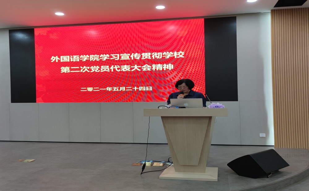 根据学校《开云足球学习宣传贯彻校第二次党员代表大会精神的通知》要求,外国语学院于2021年5月24日,在图书馆北报告厅召开学院全体教职员工大会,学习宣传贯彻校第二次党员代表大会精神,学院党委书记叶晓玲主持会议。