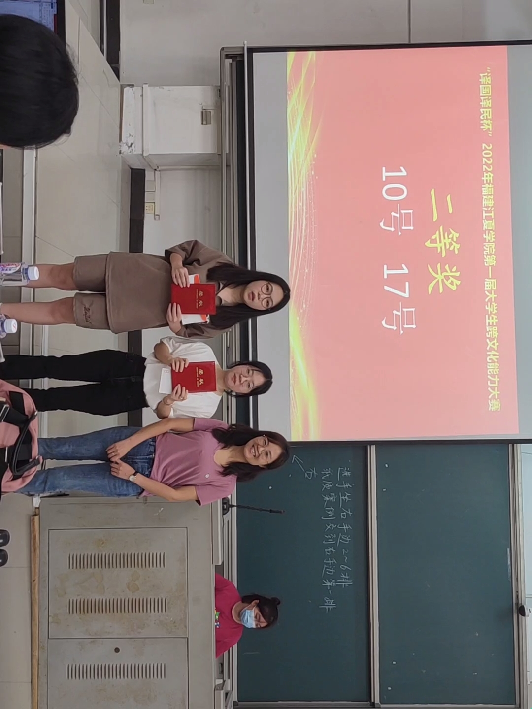 20名选手结合自身所学,将主题“Culture shock”以多重角度、丰富多彩的内容呈现,更是展示了自己敏锐的观察力和言辞流利的口语表达能力。在精彩的演说后,10名选手脱颖而出,获得了名次与赞许。其中,林雨虹获得一等奖,刘锦颜、邓颖获得二等奖,李婧宇、徐佳慧、王思达获得三等奖,熊可欣、邱晓龙、黄金花、刘奕宁获得优秀奖。
