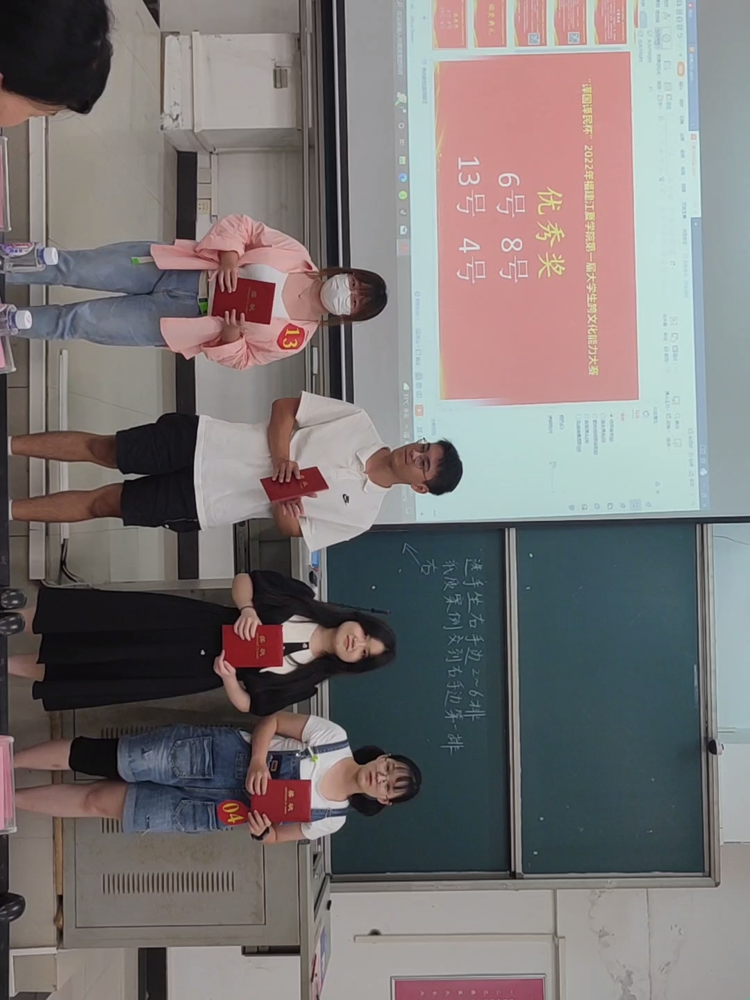 20名选手结合自身所学,将主题“Culture shock”以多重角度、丰富多彩的内容呈现,更是展示了自己敏锐的观察力和言辞流利的口语表达能力。在精彩的演说后,10名选手脱颖而出,获得了名次与赞许。其中,林雨虹获得一等奖,刘锦颜、邓颖获得二等奖,李婧宇、徐佳慧、王思达获得三等奖,熊可欣、邱晓龙、黄金花、刘奕宁获得优秀奖。