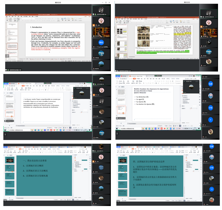 笪婷婷通过介绍灰姑娘类型电影的女主角人物形象、职业、经历以及男主角出现后剧情走向模式,探究银幕上此类女性的固定形象以及灰姑娘与浪漫女主角的关系,阐释了隐喻在浪漫电影中的多模态式呈现。李梦博士假设语言学习是通过互动进行的,通过分析协商互动中语言材料和对语言习得者的产生反馈作用,探究协商互动对外语习得者有效性帮助的机制。结果发现协商互动将学生带入更复杂的情景,它将学习者的注意力吸引到有问题的陈述上,其中,学习者无法识别所有与目标语言不一致的陈述,学习者有可能采用一种与对话者提供的目标语言不一致的形式。赖荣发博士从法国地区语言概括、法国地区语言立法概况和法国地区语言发展机遇方面分析了莫拉克法的立法背景;从地区语言遗产保护、地区语言教育、地区语言在公共服务中的使用等介绍了莫拉克法的草案内容;概括了莫拉克法被提请进行违宪审查情况,分析了法国地区语言保护的宪法边界。