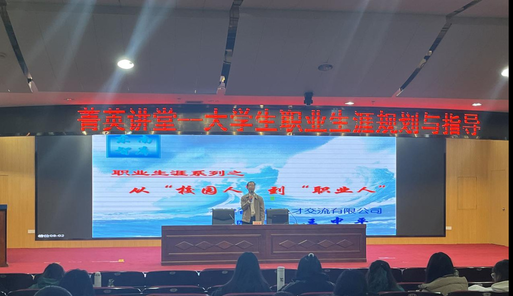 讲座上,王中平老师首先向同学们介绍了“校园人”和“职场人”两者之间的区别,引导学生们要朝着成为真正职场人的方向努力,接着王老师利用“四只毛毛虫”的案例,告诉学生们,选择决定命运,要学会正确选择职业方向,最后王老师指出,机会总是留给有准备的人,要做一名好的职场人,就要学会尽早规划,做好角色转变。