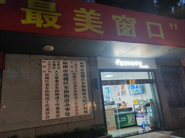 黄书记介绍“壹刻钟幸福圈”政策,调研团队街边遇到“壹刻钟便利店”。