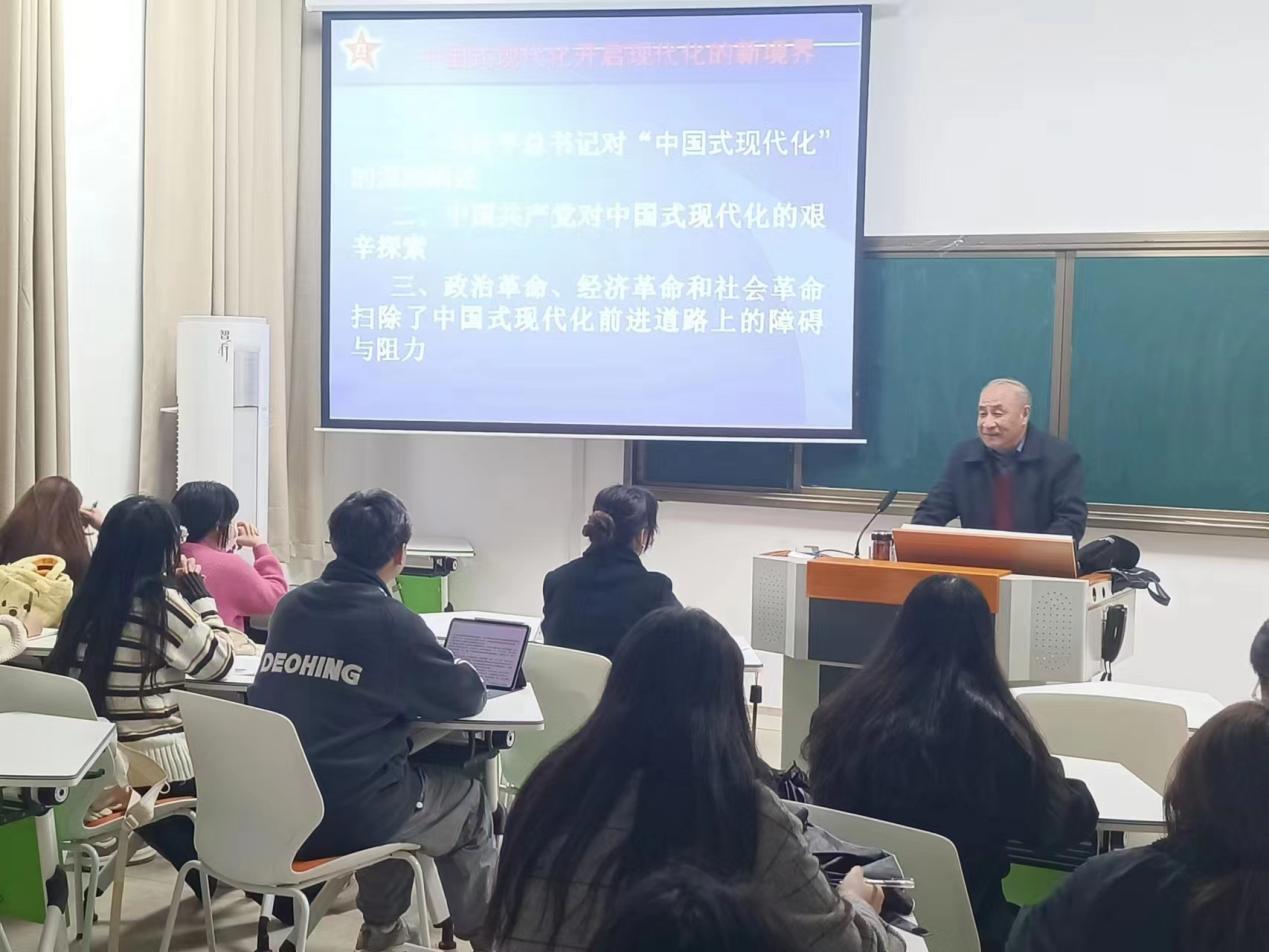 12月1日下午,学校退休教授、高级统计师、校关心下一代工作委员会副主任林自新在教学区10#106为开云足球入党积极分子、发展对象讲授题为《中国式现代化是人类社会实现现代化的新选择》主题党课。