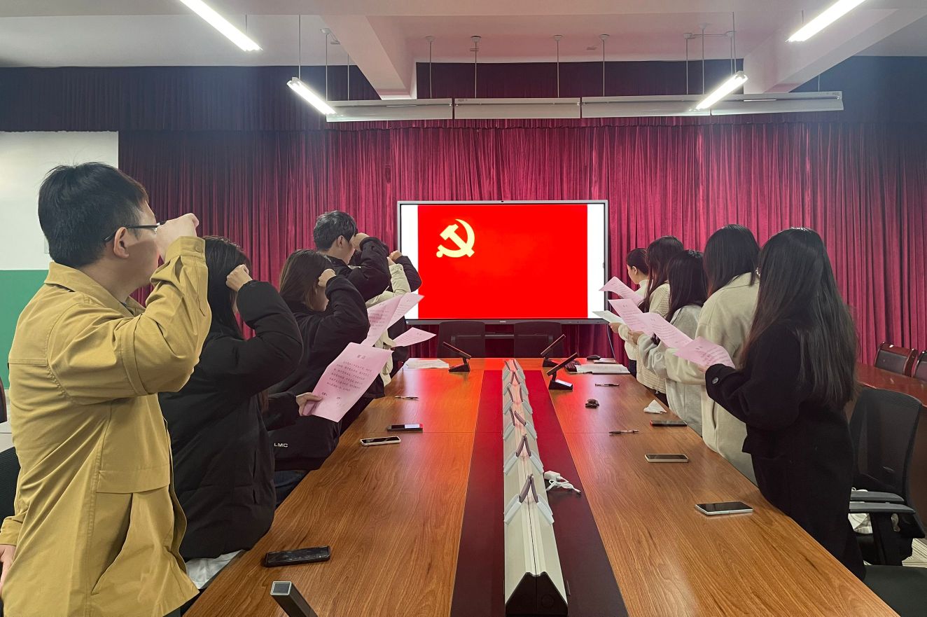 宣誓仪式以奏唱《国际歌》开始,院党委副书记、纪检委员陈松同志领读入党誓词,全体参会党员列队肃立,面对党旗,举右手齐肩握拳,高声宣誓,句句铿锵有力。宣誓结束后,新发展党员逐一作表态发言,表示要以入党誓词作为行动指南,增强党员意识,坚定理想信念,积极担当作为。