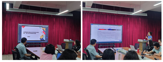 56日,洪丽菁就《Examining Mediators in ChatGPT's Impact on Enjoyment,Anxiety, and Self-Efficacy Among Chinese L2 Learners》、马升慧就《商务英语专业学生外语愉悦与外语焦虑对外语成绩的效应路径研究》进行学术汇报。
