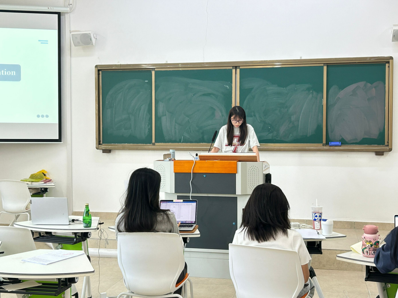 此次毕业论文答辩会全程组织有条不紊,答辩流程规范合理、紧凑严谨,设置了“论文自述”“教师提问”“学生答辩”这三项内容。首先,答辩人在规定的时间范围内,结合幻灯片的内容,分别就各自论文的选题背景、中心论点、研究对象及意义、研究结果与结论等诸多方面完成其论文的自我陈述。