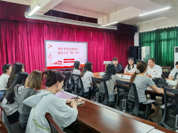 学院党委书记朱雷达以《践行党章党规党纪 走好人生“第一步”》为题,聚焦开展党纪学习教育目的意义、解读《中国共产党纪律处分条例》新增或修改的重点条文、分析数起鲜活的年轻职场人违纪违法典型案例,提醒毕业生党员走上职场更要认真学习《中国共产党纪律处分条例》,做到学纪、知纪、明纪、守纪,搞清楚党的纪律规矩是什么,弄明白能干什么、不能干什么,把遵规守纪刻印在心,内化为言行准则。务必要坚守底线、不踩红线、不碰高压线,养成严于律己、廉洁修身的政治素养,永葆共产党人清正廉洁的政治本色,引导毕业生党员遵纪守法、廉洁从业,争做廉洁自律的表率。