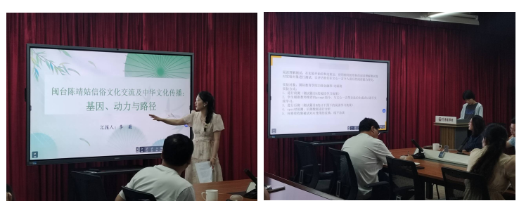 624日,陈励就“生成式人工智能的介入对大学生的英文阅读学习干预效果研究,李薇就“闽台民俗文化交流及中华文化传播现状调查进行学术汇报。
