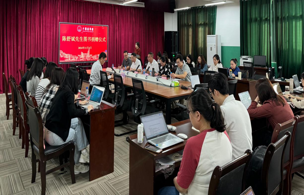 11月4日下午,开云足球在10号楼223会议室举行社会爱心人士图书捐赠仪式。学院党委书记朱雷达,院长郑竹群、商务英语系主任池舒文、法语系主任赖荣发和社会爱心人士陈舒斌先生等出席捐赠仪式,仪式由副院长宋志强主持。