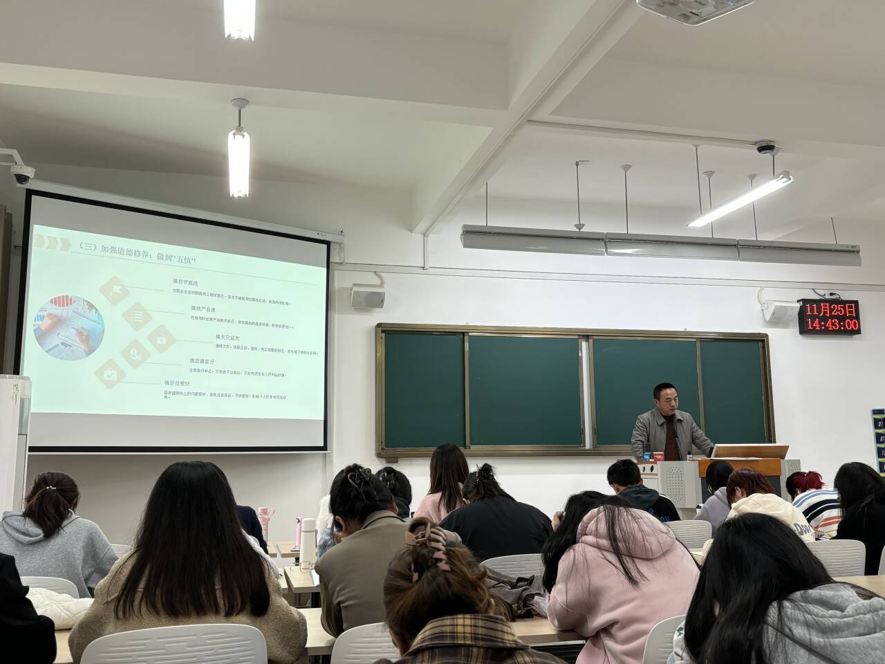 党课上,陈松从中国共产党百年反腐历史、充分认识当前反腐败斗争的形势、以案为鉴警钟长鸣、做一名合格的党员干部等四个方面讲授党课。他指出,当前党风廉政建设和反腐败斗争形势依然严峻复杂。一方面,反腐败斗争取得了压倒性胜利并全面巩固,但我们不能有丝毫松懈。另一方面,随着经济社会的发展和改革的不断深入,腐败现象也呈现出一些新特点、新趋势。他通过讲解三个典型案例,让学员们直观了解了腐败的严重后果。这些案例就像是一个个生动的法治“教材”,把抽象的纪律条文转化为具体可感的事例,使学生党员干部直观地认识到哪些行为是违反纪律的,从而加深对纪律边界的理解。在讲授做一名合格的党员干部的内容时,陈松结合《中国共产党党员网络行为规范》的内容,他强调,网络行为是党员干部的重要组织部分。互联网时代,党员干部要发挥模范带头作用,规范网络行为,自觉坚守原则和底线,严禁触碰“十一个不得”的网络行为。