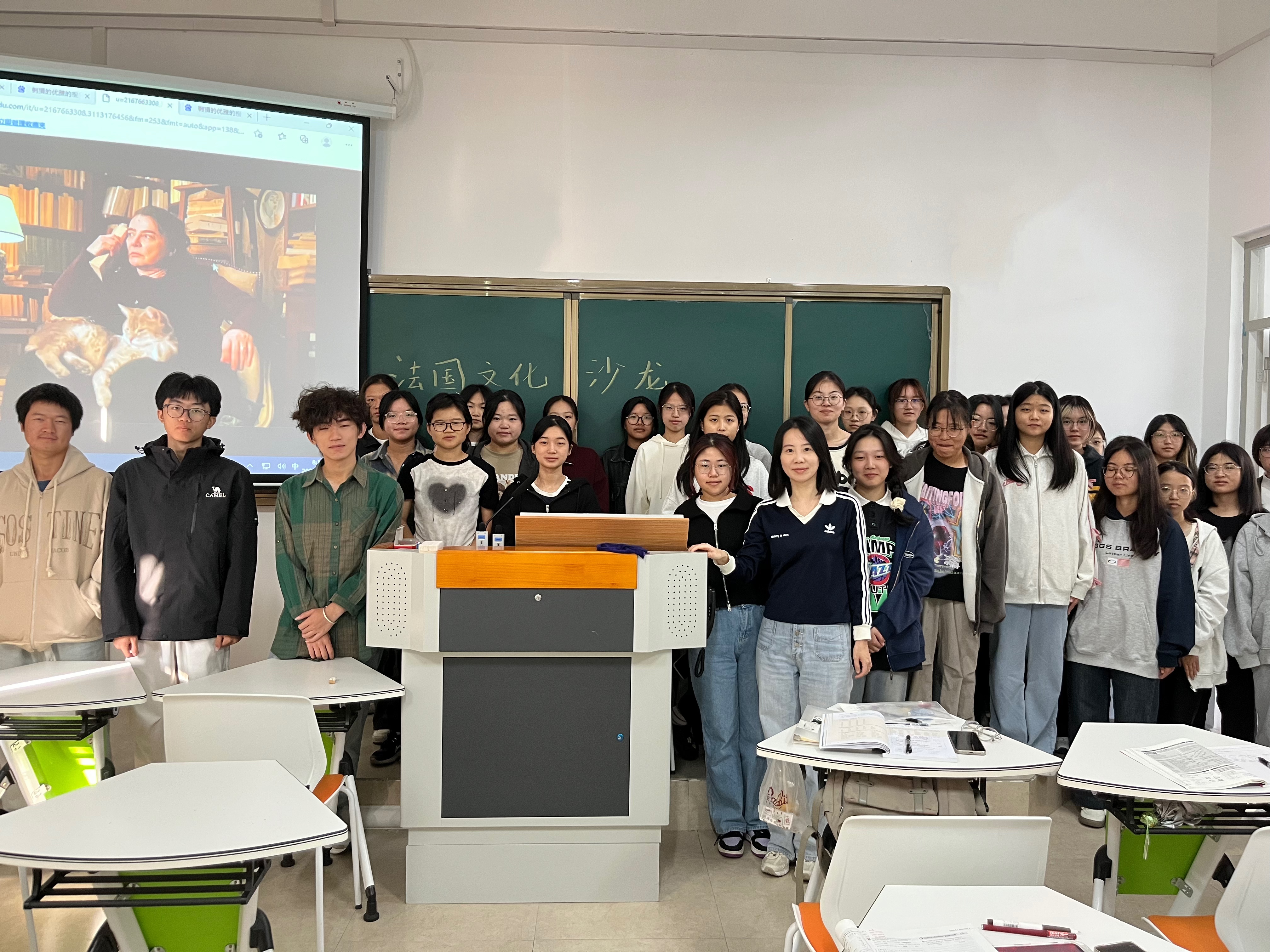 活动上,组织学生观看改编自梅丽莎·皮诺同名小说的法语电影《刺猬的优雅》(Le Hérisson),该电影通过对不同社会阶层和个体的刻画,以细腻的笔触和独特的叙事视角,描绘生命的意义与个体的内心世界。放映结束后,引导学生以“存在主义与人生意义”为话题,展开热烈讨论。学生通过对影片角色的探讨,感受到了法国文化中对社会不平等和个体尊严的关注,呼应了法国大革命所倡导的“自由、平等、博爱”的精神内核,领悟了法国人崇尚思辨、反思人生的精神传统。同时组织学生就电影的叙事手法、人物造型和电影音乐等元素开展艺术鉴赏,培养学生的文化理解、审美感知、艺术表现等美育素养。