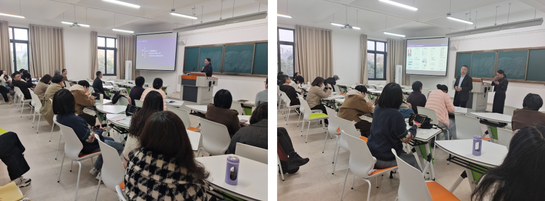 12月16日,胡晓希就“探索基于产出导向法的大学英语线上教学模式”主题,刘奋翼就“挑战与收获,未来如何突破一-“国才杯”英语演讲赛复盘”主题分别进行发言。