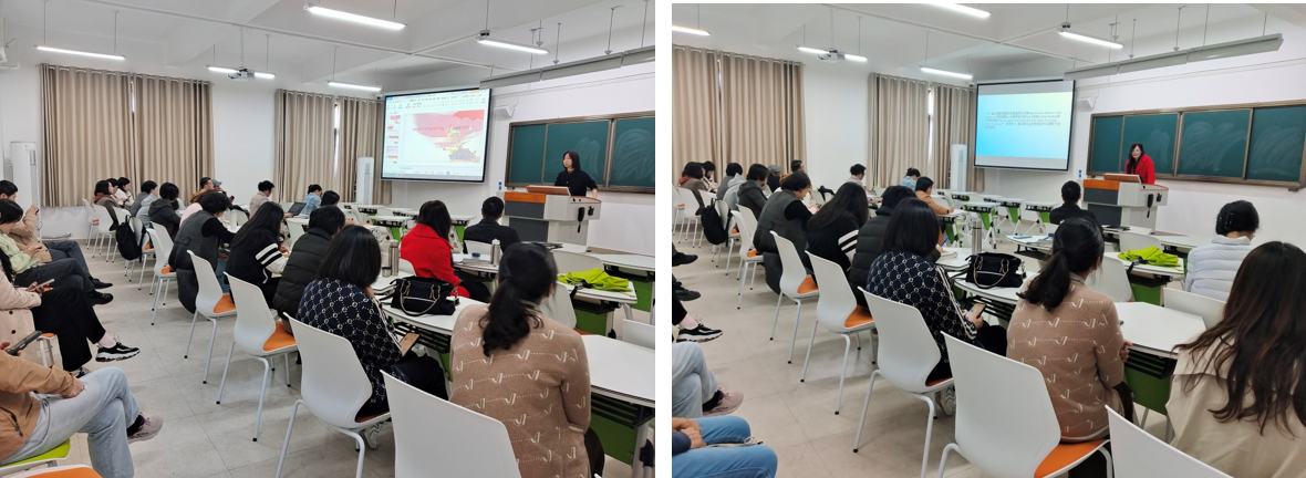 12月2日,林海梅就“基于OBE理论的‘三维一体’+‘线上线下混合’大学英语课程思政教学改革实践——以U1 Never,ever give up为例”主题,胡承伟就“对‘英雄’概念的理解与领悟一以UNIT3思政教学的课后拓展为例”主题进行发言。