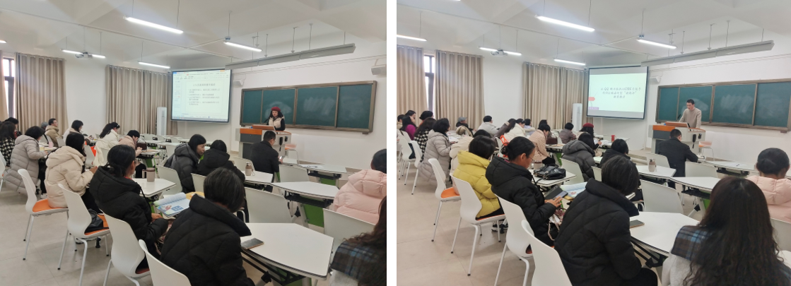 2月24日,郭剑晶就“新文科背景下大学英语教学的几点思考”,韦艳赠就“以QQ群为依托,以0BE为指导的词汇短语句型‘讲练评'教学教法”进行研讨。