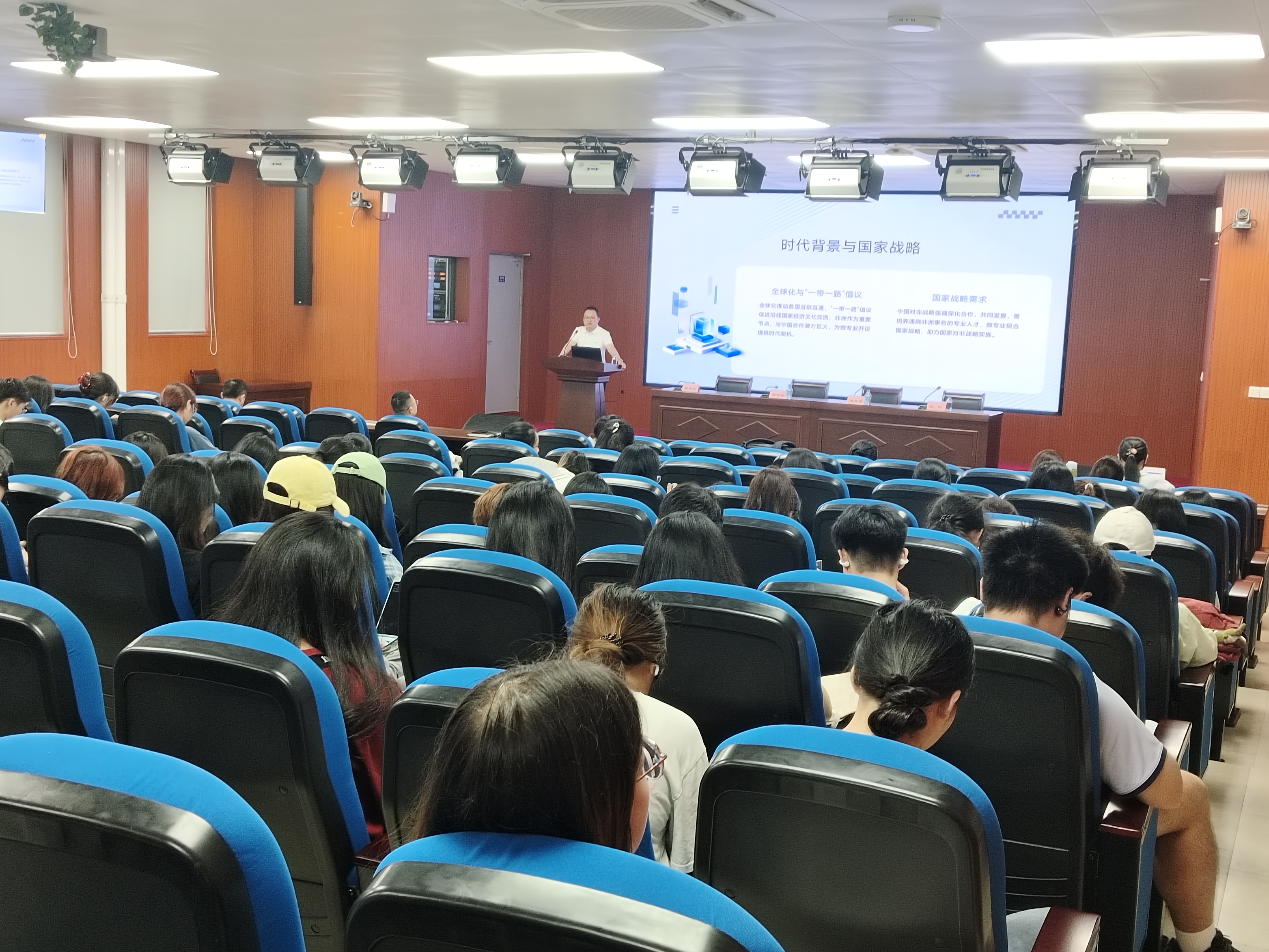 上,郑竹群基于对非洲的尼日利亚、加纳等国的实地考察和调研经历,通过展示贝宁大学、加纳大学、加纳经济事务研究所等教育机构,以及尼日利亚永星钢铁有限公司、加纳格林豪斯国际置业集团等企业的实际情况,向学生们全面呈现了非洲当地社会、经济、教育及文化的多维度面貌,进一步加深了学生们对非洲的理解和兴趣。此外,她还介绍了目前在尼日利亚永星钢铁有限公司工作的优秀毕业生蔡宇鹏同学,通过视频分享了他的职业成长历程和个人感悟,为有意前往非洲发展的学生提供了宝贵的参考。