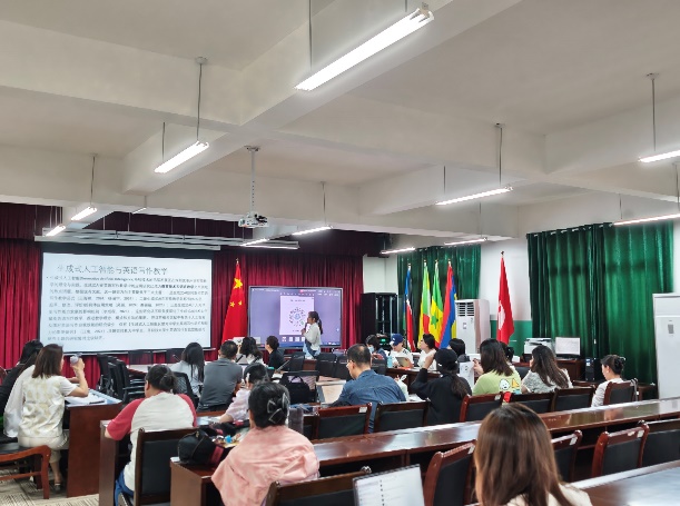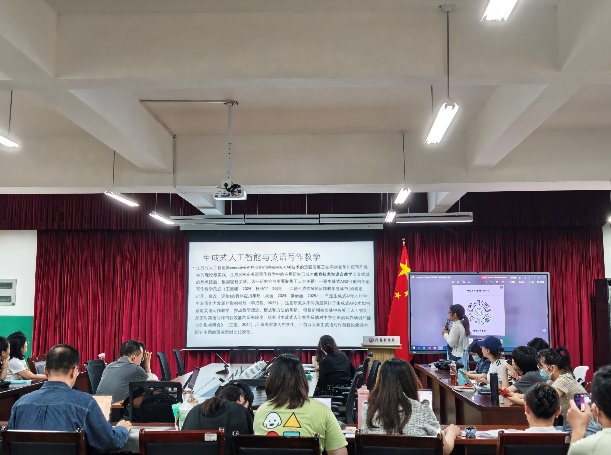 5月19日,吴可佳就 《生成式人工智能反馈对雅思英语写作自我效能感影响的研究》进行学术汇报。
