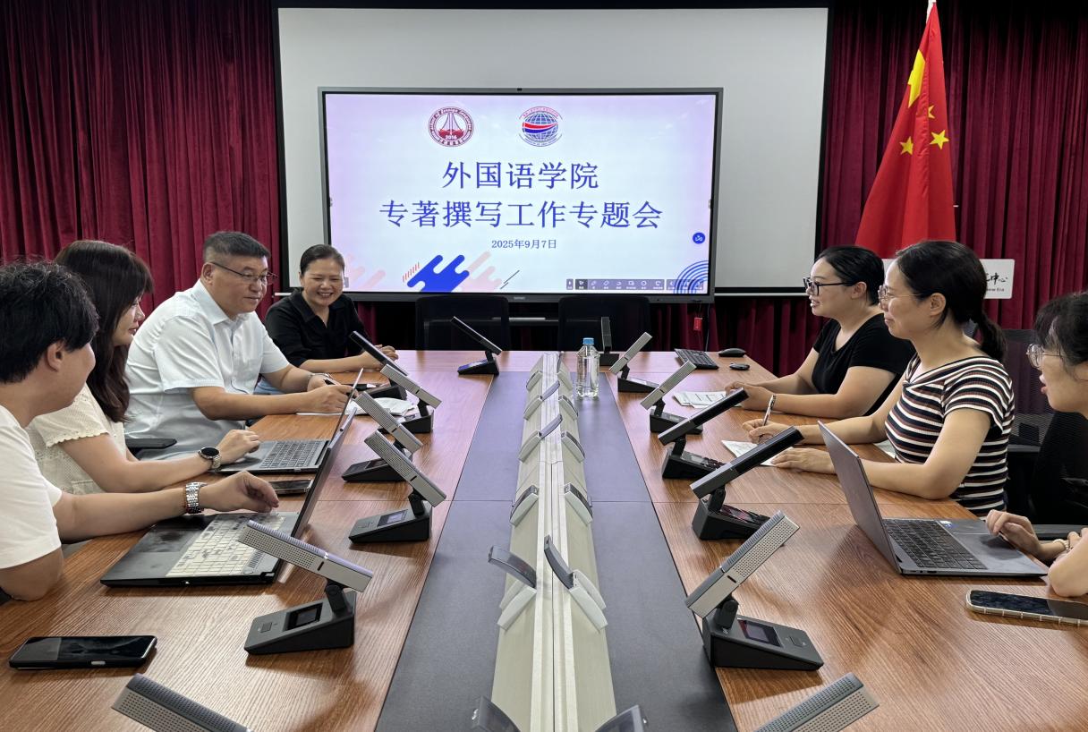 会上,郑竹群指出,专著建设是学科体系构建的重要支撑,也是推进硕士点申报的关键基础性工作。本次系列专著撰写涵盖13本专著,内容涉及中非经贸合作、西非国家国情、中国投资加纳状况等多个区域国别研究方向,旨在系统梳理理论框架、总结实践经验,形成一批具有外语学科特色、符合国别区域研究需求的学术成果。