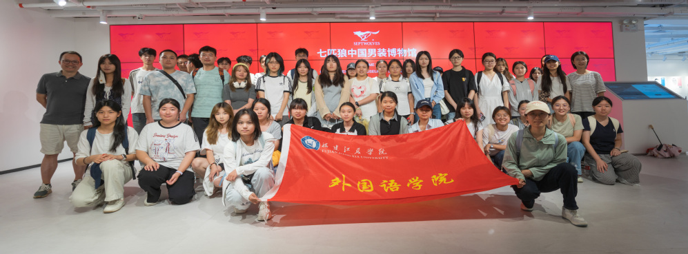 随后,师生一行前往七匹狼中国男装博物馆,系统考察了该品牌从本土崛起到国际化发展的演进历程。馆内陈列的历代产品、跨界联名系列以及详实的企业文化档案,为同学们提供了丰富的实景学习素材,使他们得以在真实语境中融汇课堂所授的理论知识与语言技能。参观期间,师生围绕“七匹狼如何构建具有中国特色的品牌形象”展开深入探讨,这一过程不仅加深了学生对品牌国际化传播策略的理解,也促使他们思考语言、文化与商业之间的互动关系。